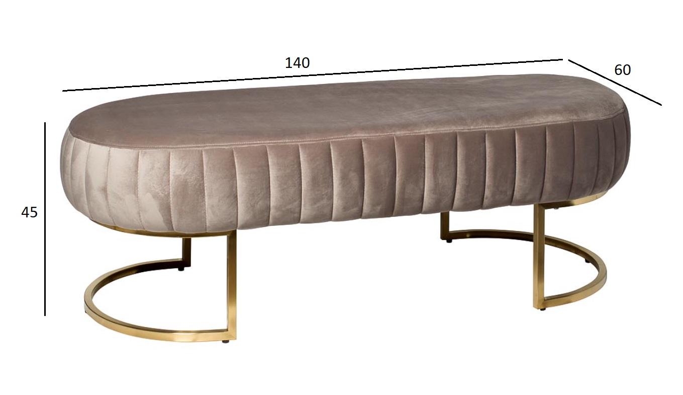 Элегантная дизайнерская банкетка покоряет красотой и удобством. Изысканный оттенок стеганой велюровой обивки в сочетании с золотистыми ножками необычной формы придает банкетке богемный вид. Округлые формы и нежнейший велюр просто созданы для спальни или будуара. Банкетка будет уместна как в изножье кровати, так и в комбинации с кофейным столиком подходящего дизайна. Необыкновенно аристократично банкетка будет выглядеть в холле или просторной прихожей, чтобы вы и ваши гости могли присесть или переобуться с комфортом.