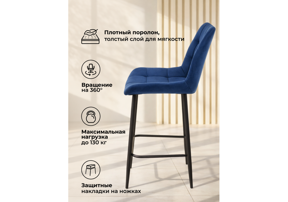 Барный стул поворотный Woodville Челси 360 синий (zd 798) / черный np 632580 во Владимире
