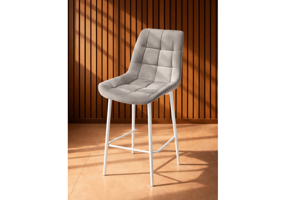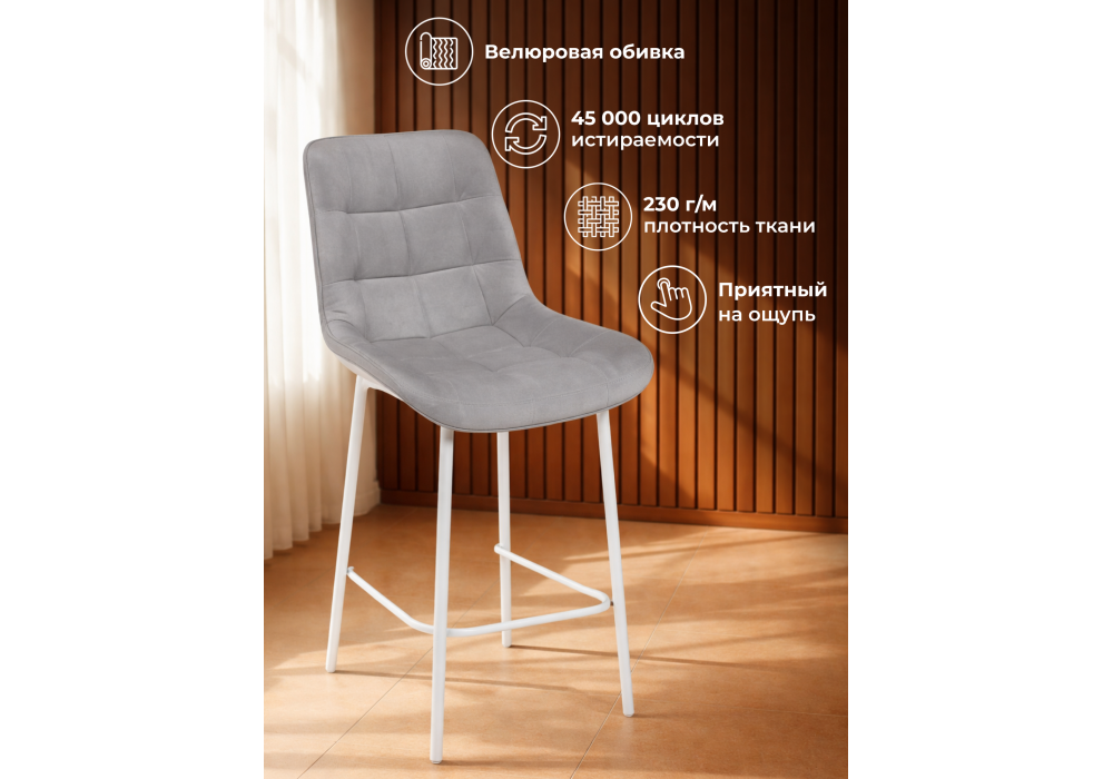 Материал каркаса - металл; Материал сиденья - велюр; Материал обивки - велюр; Цвет ножек - белый; Ширина - 50; Глубина - 58; Высота - 99; Ширина сиденья - 46; Глубина сиденья - 41; Высота сиденья - 63;