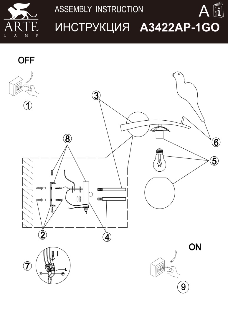 Данную модель A3422AP-1GO с быстрой доставкой спешите купить по цене 7 580 ₽ в магазине 220svet.ru