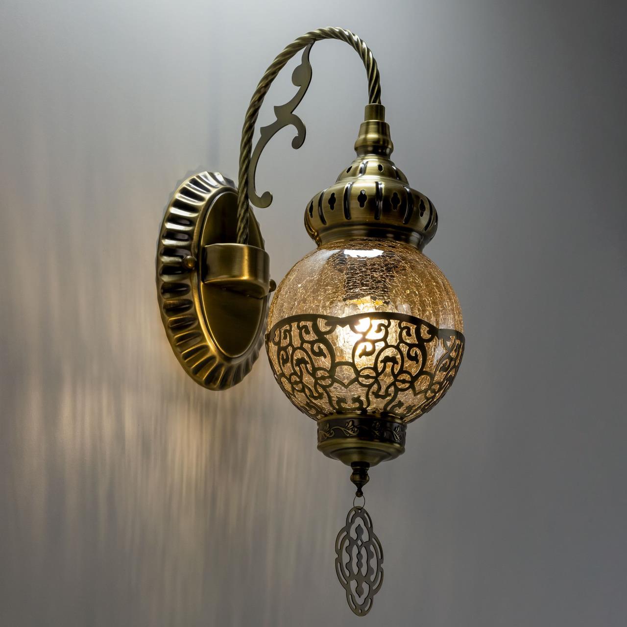 Восточный настенный светильник CL419313 производитель Citilux относится к серии Каир с одним плафоном. Корпус металлический, цвет бронза. Плафон в форме шара, изготовлен из прозрачного стекла медового оттенка, украшен декоративными, ажурными элементами. В изделии используется лампа с цоколем Е27, максимальной мощностью для ламп накаливания 75Вт. Светодиодные лампы можно устанавливать более яркие. Тип крепления к стене – планка. Бра Каир CL419313 прекрасный вариант для атмосферного освещения интерьеров квартир и загородных домов, выполненных в восточном стиле. Это великолепное решение при оформлении уютных кафе, баров и ресторанов , страна бренда Дания.Купить модель CL419313 спешите в интернет-магазине 220svet.