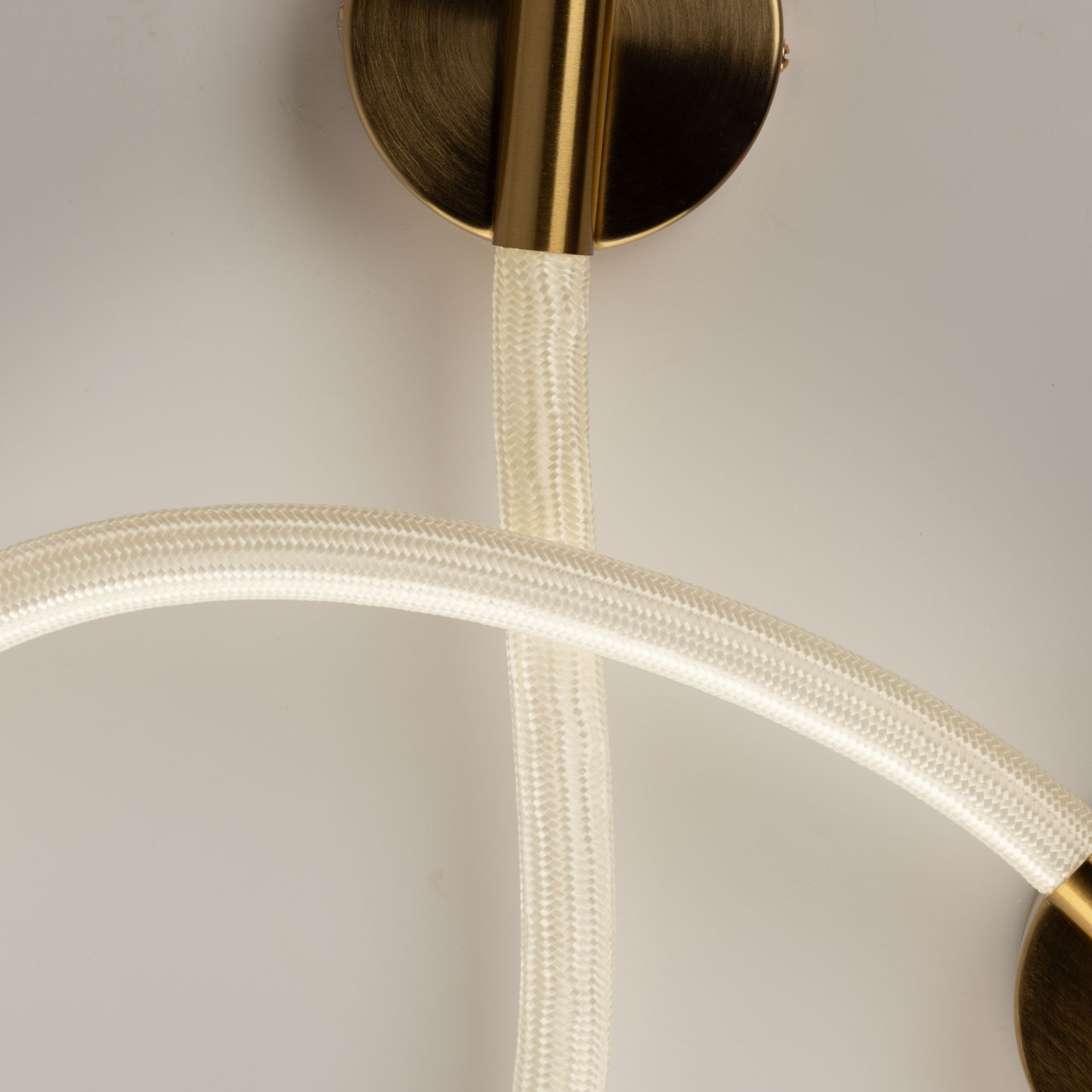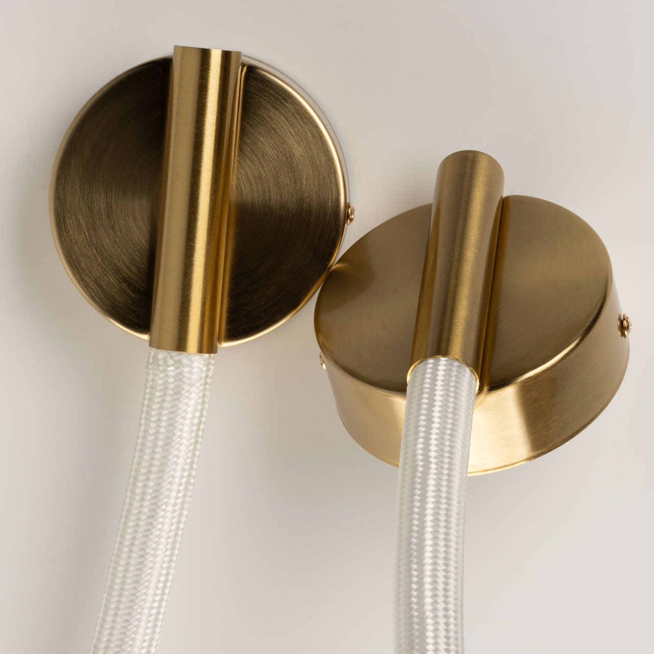 Металлическое основание бра гальванизировано в цвет латуни. Гибкий плафон настенного бра выполнен из белого матового силикона.