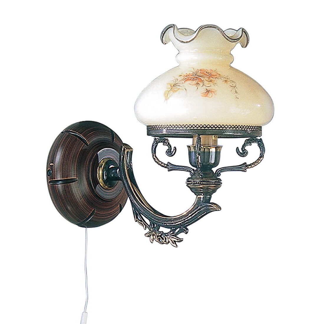 Бра Reccagni Angelo A 2812/1 Итальянского производсва – уникальное сочетание высокого качества и удивительных фактур. Этот светильник Классического стиля хорошо подойдет Для кафе, ресторанов и придаст помещению мягкий и приятный свет. Плафоны белые из стекла. Арматура бронза из металла. Кол-во ламп - 1шт. Общая мощность 60W