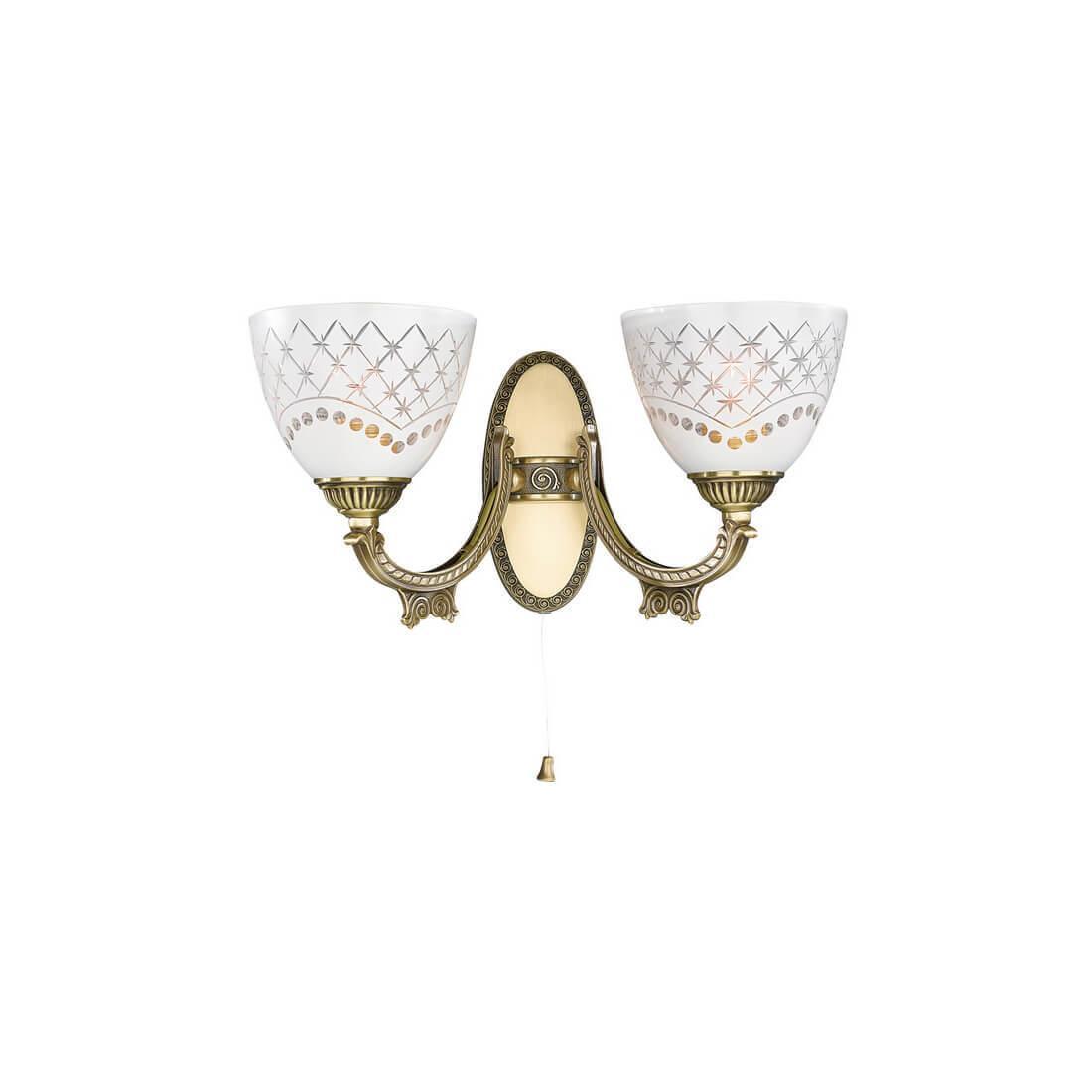 Бра Reccagni Angelo A 7052/2 Итальянского производсва – уникальное сочетание высокого качества и удивительных фактур. Этот светильник Классического стиля хорошо подойдет Для гостиной и придаст помещению мягкий и приятный свет. Плафоны белые из стекла. Арматура бронза из металла. Кол-во ламп - 2шт. Общая мощность 120W