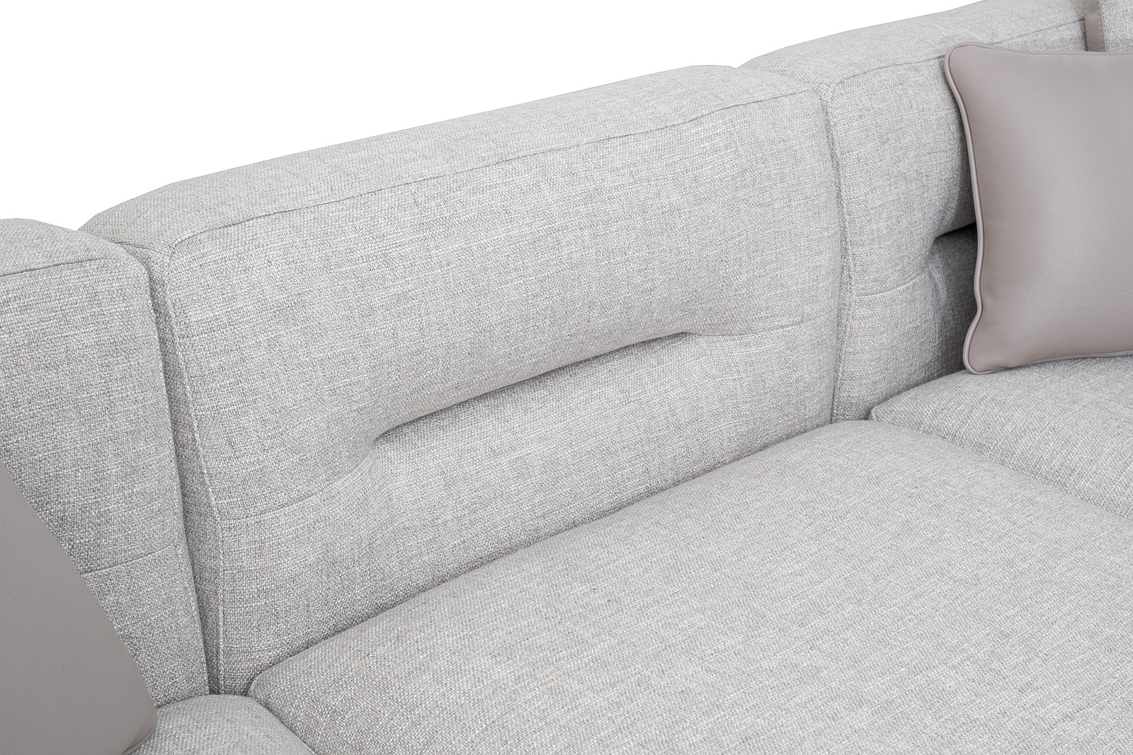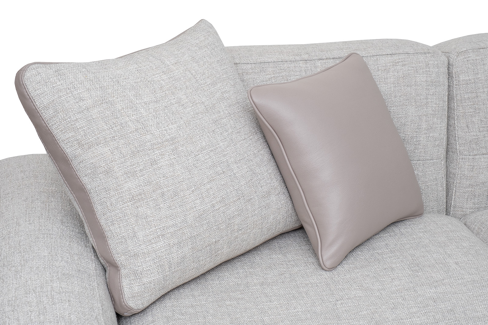 Комплект мебели №12 диван модульный PORTO (правый угол). В состав комплекта входит: основание трехместное-1шт, выполнена в иск.коже Enzo902; подлокотник низкий-2шт; сиденье с высокой спинкой-3шт; отдельностоящий пуф- 1шт. Основная ткань комплекта- рогожка Norton SER из коллекции тканей Garda Decor. В сотав комплекта входят декоративные подушки: 50*50см с бурлетом 2шт- в ткани Norton SER. бурлет- иск.кожа Enzo902; 40*40см с кантом 2шт- в иск.коже Enzo 902. Металлические опоры- 170см, цвет черный. Габариты комплекта: ширина-294см, глубина- 194см, высота-75см. Глубина пуфа- 107см, глубина посадочного места- 82см, высота посадочного места- 45см
