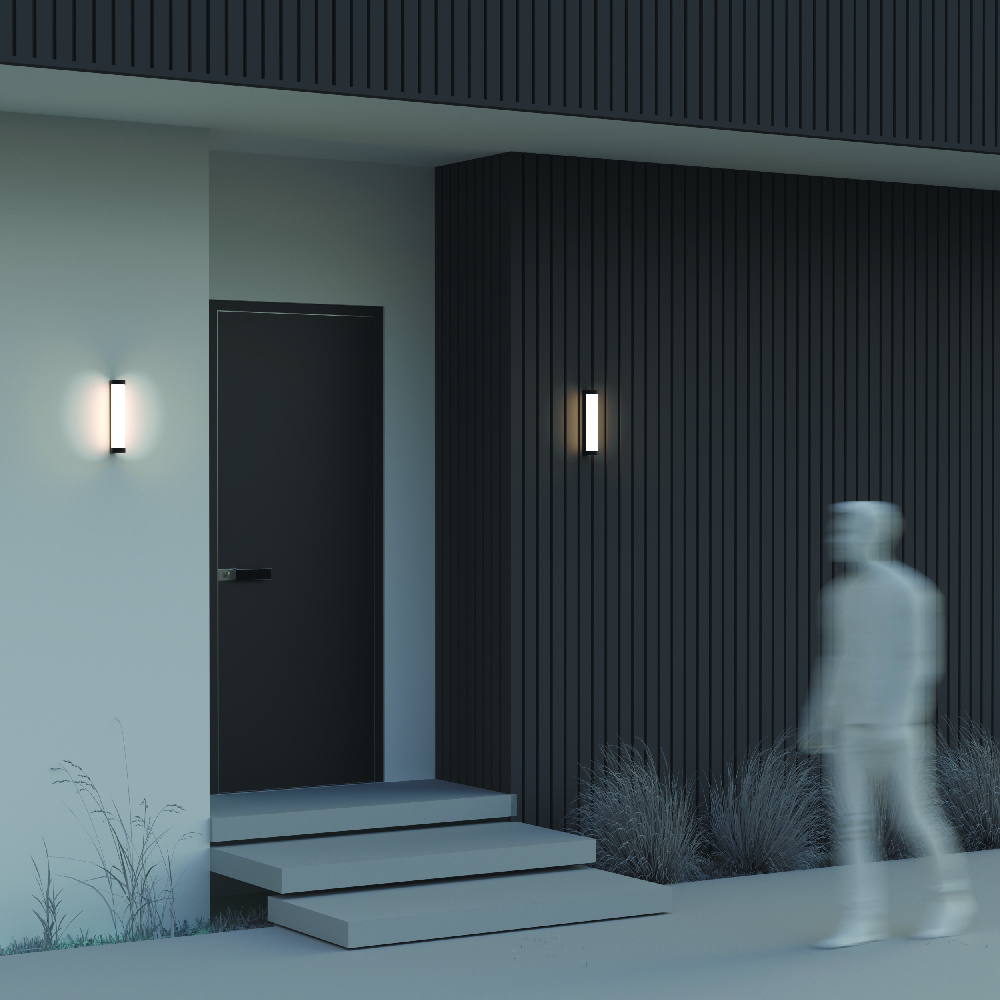 Настенные светильники бра. Корпус — алюминий, цвет — глубокий черный. Вертикальная конструкция с двусторонним световым потоком. LED-технология, теплый свет 3000К. Модели мощностью 12 Вт и 16 Вт. Защита от влаги и пыли — IP54. Подходящее решение для создания атмосферного освещения фасадов и внутренних помещений.