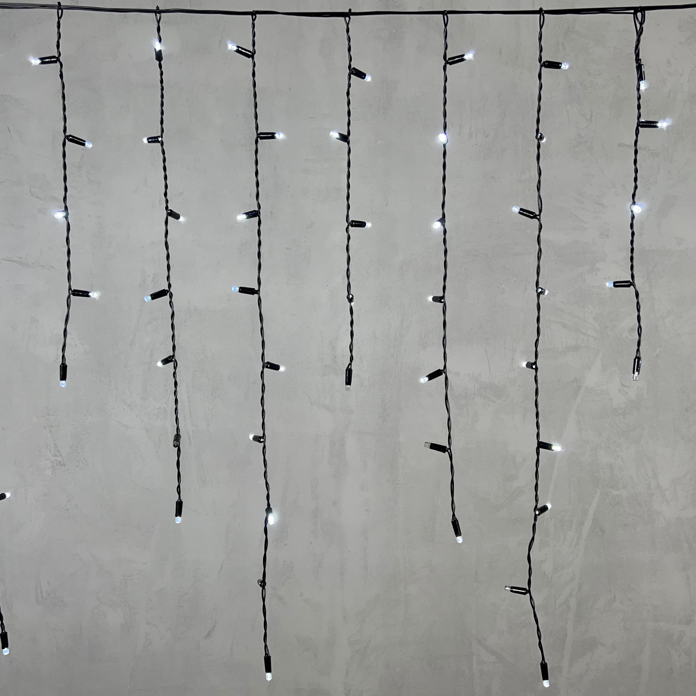 Купить "Гирлянда Бахрома с Колпачком 3,2 x 0,9 м Белая с Мерцанием Белого Диода 220В, 168 LED, Провод Черный ПВХ, IP65 LTC PIL180BLWCAP-11-2W"