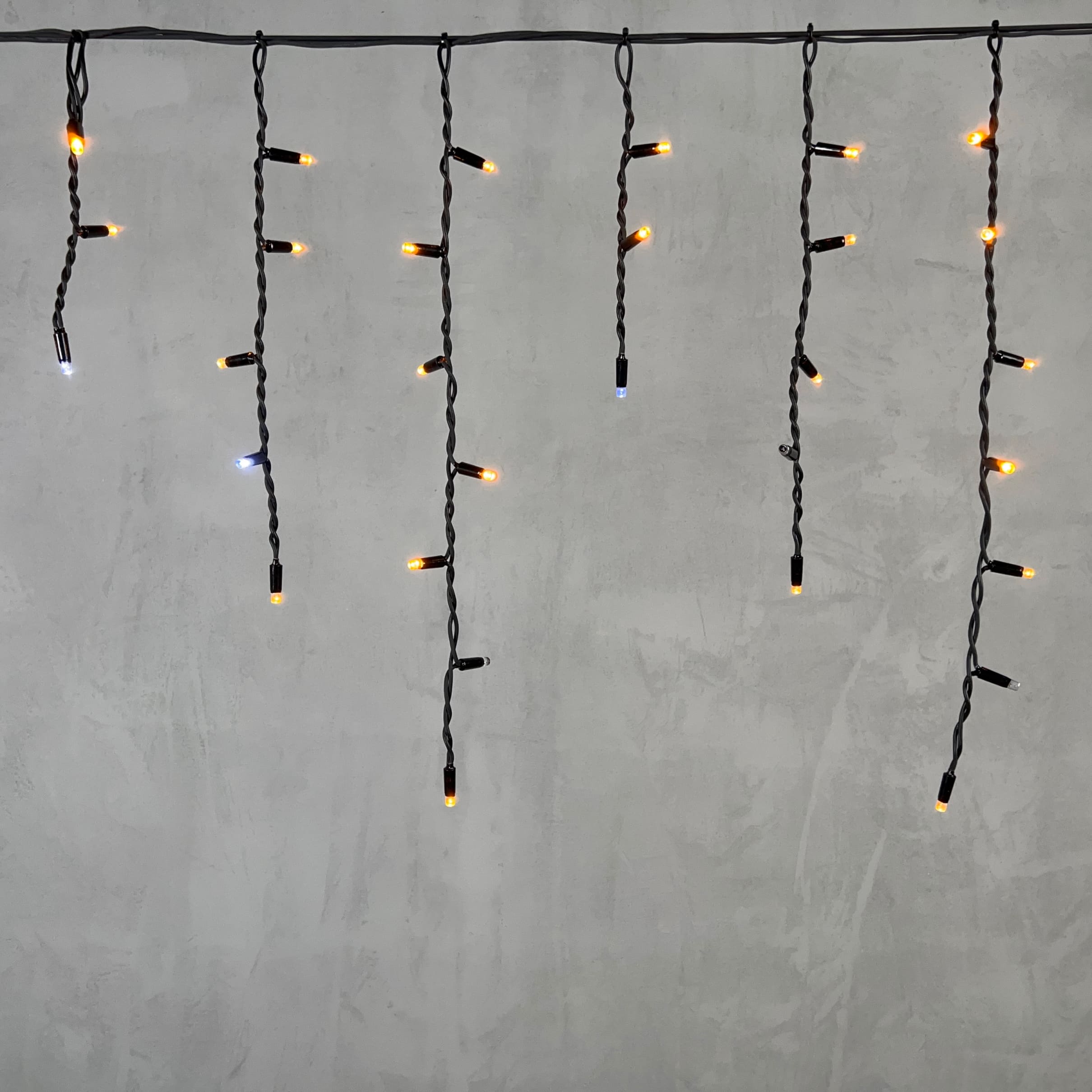 Купить "Гирлянда Бахрома 3,1 x 0,5 м Жёлтая с Мерцанием Белого Диода 220В, 120 LED, Провод Черный Каучук, IP65 LTC LL120BLW-1-2Y"
