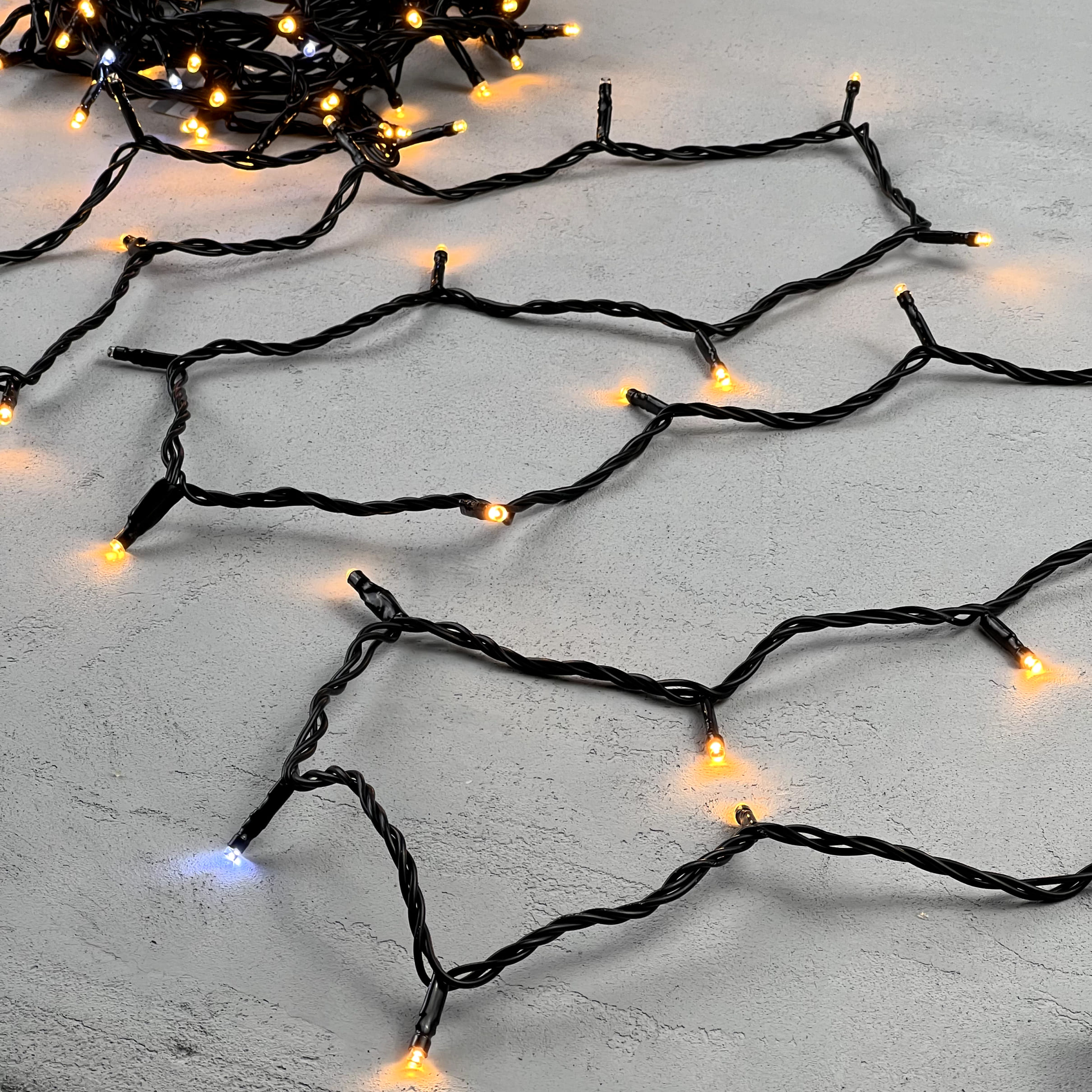 Купить "Гирлянда Нить 10м Экстра Тепло-Белая с Мерцанием Белого Диода 24В, 100 LED, Провод Черный ПВХ, IP54 LTC PST100BLW-11-1EWW"