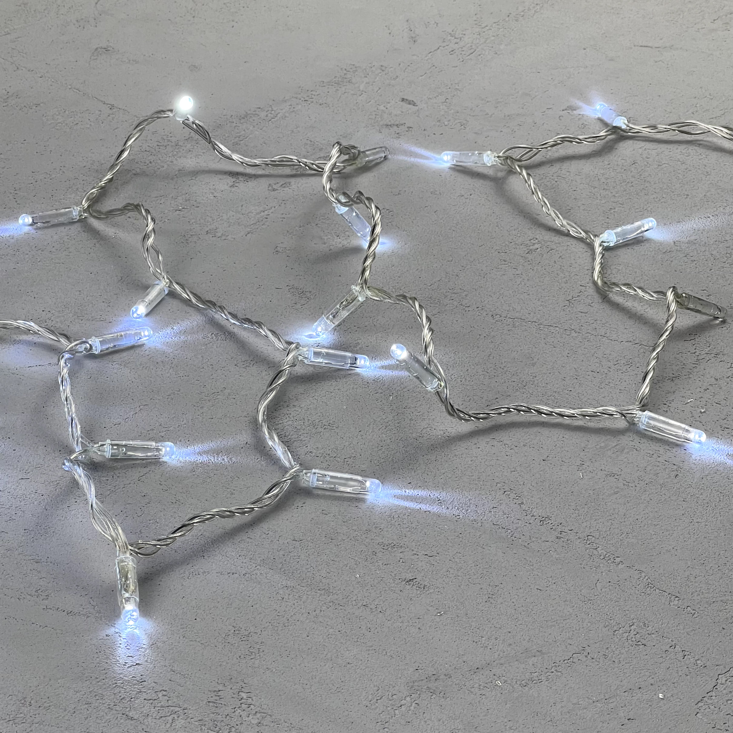 Купить "Гирлянда Нить с Колпачком 10м Белая с Мерцанием Белого Диода 24В, 100 LED, Провод Прозрачный ПВХ, IP65 LTC PST100BLWCAP-10-1W"