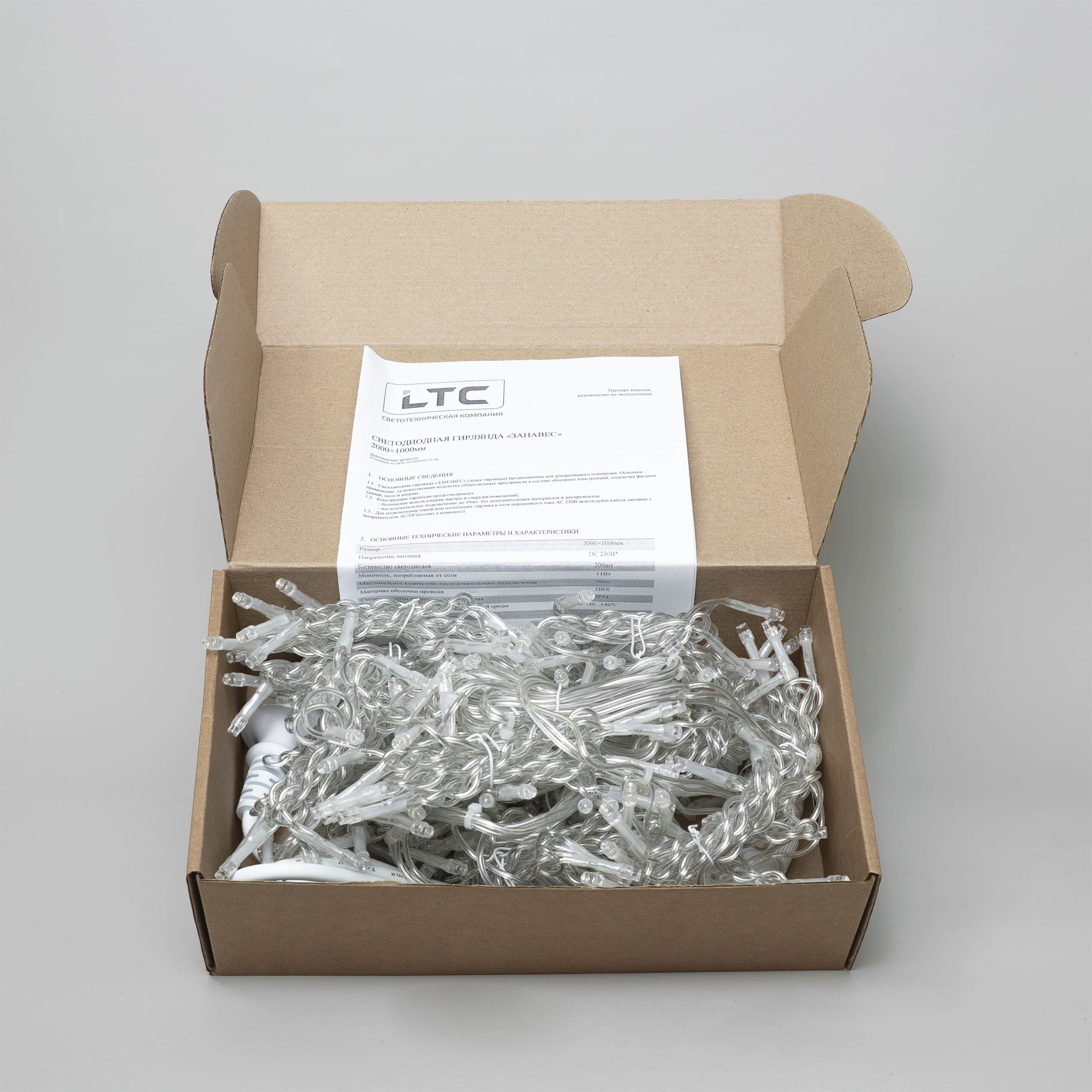 Гирлянда Занавес Облегченный 2 x 1 м Тепло-Белый 220В, 200 LED, Провод Прозрачный ПВХ, IP54 LTC PCL200NOT-10-2WW во Владимире