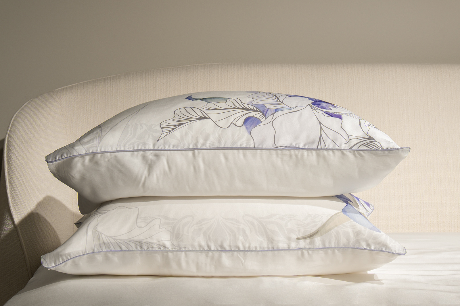 Комплект сшит из 100% ткани тенсель. Ткань мягкая, немного блестящая, как шелк, но при этом – не скользкая.