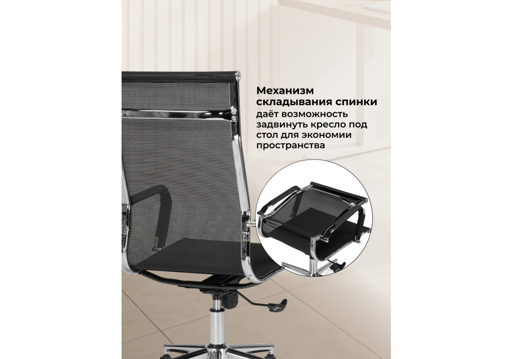 Материал каркаса - металл; Материал сиденья - сетка, нейлон; Материал обивки - сетка, нейлон; Ширина - 54; Глубина - 60; Высота - 108; Ширина сиденья - 47; Глубина сиденья - 46; Высота сиденья - 47; Высота спинки - 61; Высота максимальная - 118;