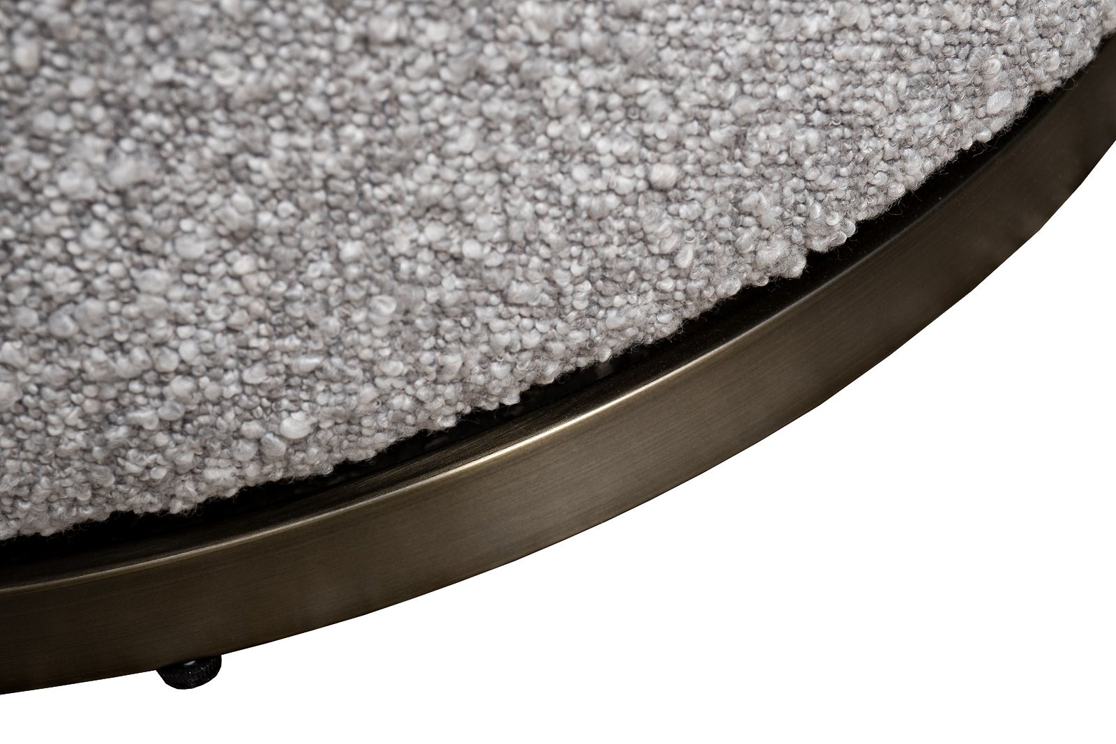 В стандартном исполнении: обивка в ткани букле из коллекции Garda Decor Orso-SER, основание - нержавеющая сталь цвет бронза.