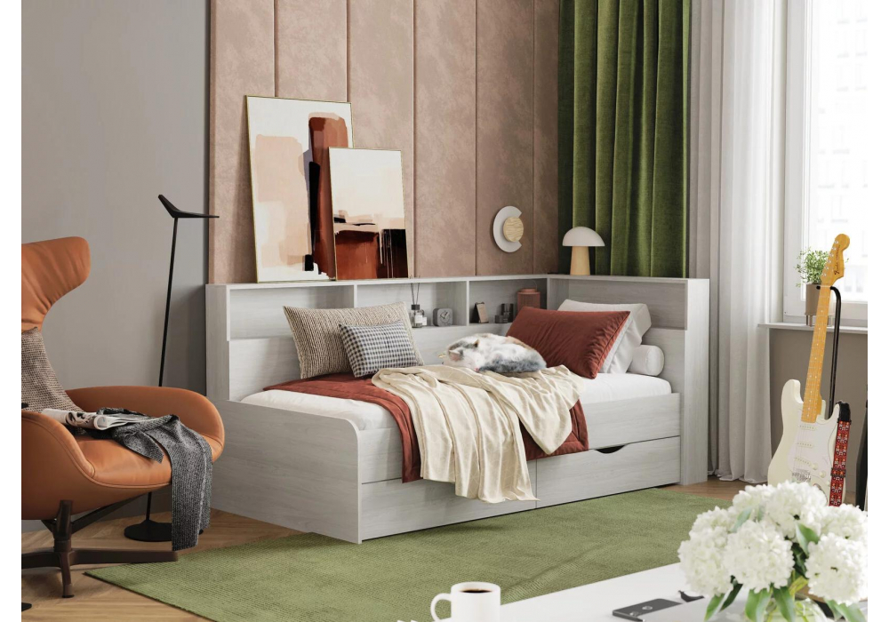 Материал каркаса - ЛДСП; Ортопедическое основание - в комплекте; Материал ортопедического основания - настил; Цвет каркаса - Анкор светлый; Размер спального места - 80 х 190; Длина кровати - 208,2; Ширина кровати - 100; Высота кровати - 90;