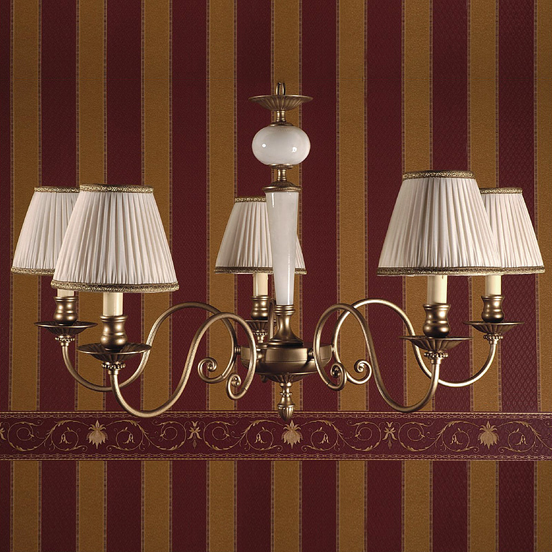 Люстра из коллекции I Nobili - Alabastro. Текстильные абажуры белого цвета. Позолоченная основа с декором из камня алебастра белого цвета. Высоту люстры можно регулировать за счет звеньев цепи.