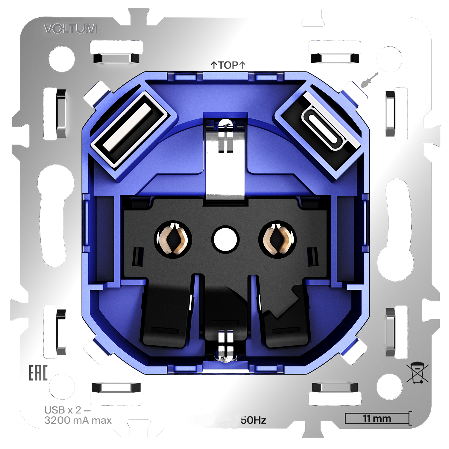 Купить "Механизм розетки с заземлением и защитными шторками 16А, с USB A+C, S70 Voltum S70 VLS0405M"