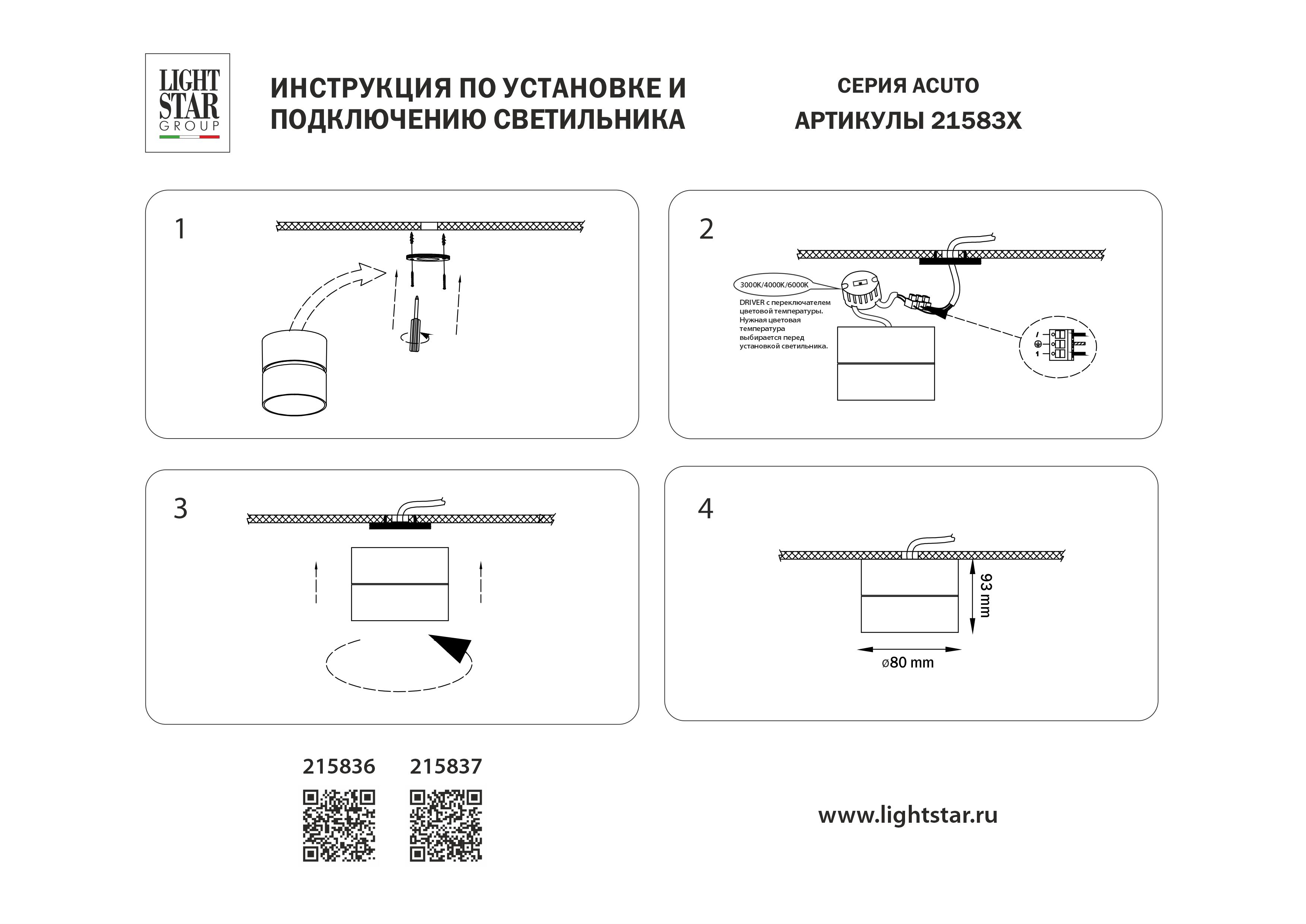 Накладной светодиодный светильник с переключателем света Lightstar Acuto 215837 во Владимире