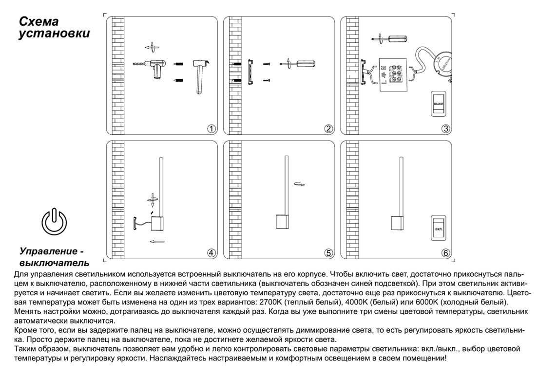 - Режим работы: Регулировка яркости свечения, Регулировка цветовой температуры
