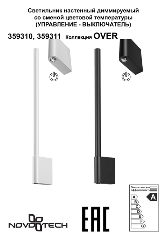 - Технические особенности: Выключатель на корпусе, Сенсорные, Диммер сенсорный