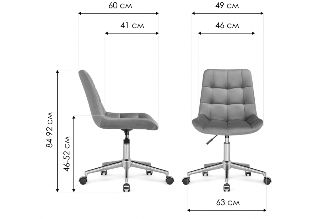 Высота спинки: 38 см. Материал каркаса - металл; Материал сиденья - велюр; Материал обивки - велюр; Цвет ножек - черный; Ширина - 49; Глубина - 60; Высота - 84; Ширина сиденья - 46; Глубина сиденья - 41; Высота сиденья - 46; Высота спинки - 38; Высота максимальная - 92;