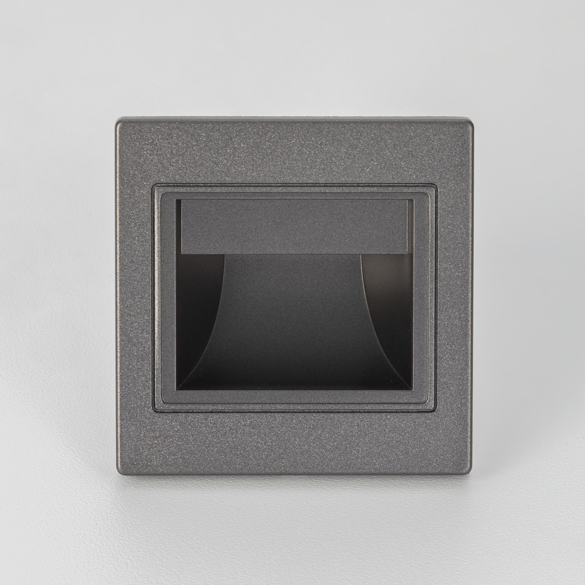 Светильник квадратной формы, корпус изготовлен из прочного полимера цвета графит. Для удобства монтажа, поставляется в комплекте с установочной коробкой.