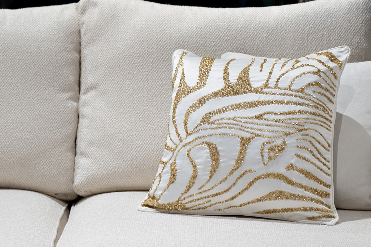Декоративная подушка с бисером – эффектный штрих, который добавит изысканности диванам и креслам. Она органично впишется в стилистику ар-деко, шебби-шик, неоклассика, эклектика, авангард. Диванная вышитая подушка выполнена из качественного плотного материала с высокой устойчивостью к износу и деформациям. Актуальный анималистичный принт в виде зебры, вышитой бисером, делает эту подушку стильным дополнением к мягкой мебели, кроватям, креслам и стульям.