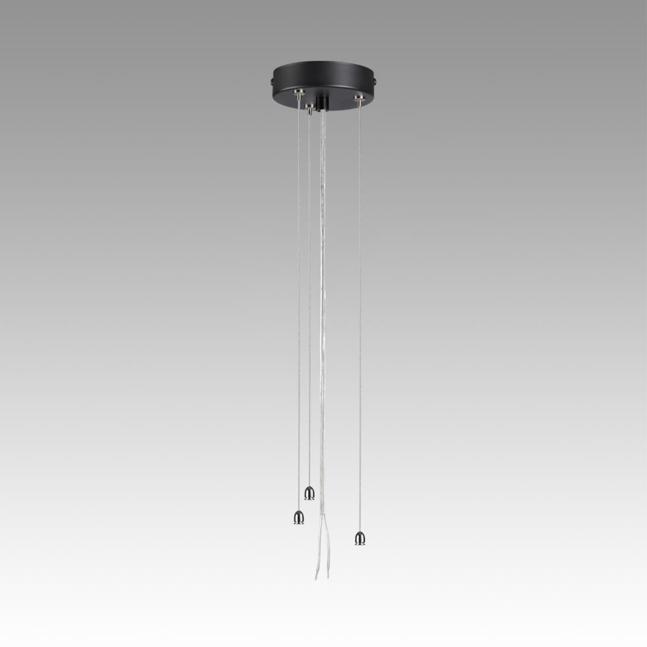 Тросы подвесного крепления для модели QUANTUM LED выполнены из металла. Потолочная металлическая чаша выкрашена в цвет корпуса светильника - угольно-черный. Питающий провод - белого цвета.