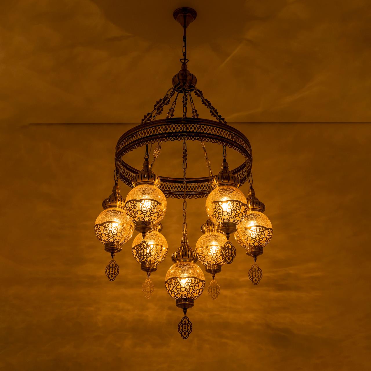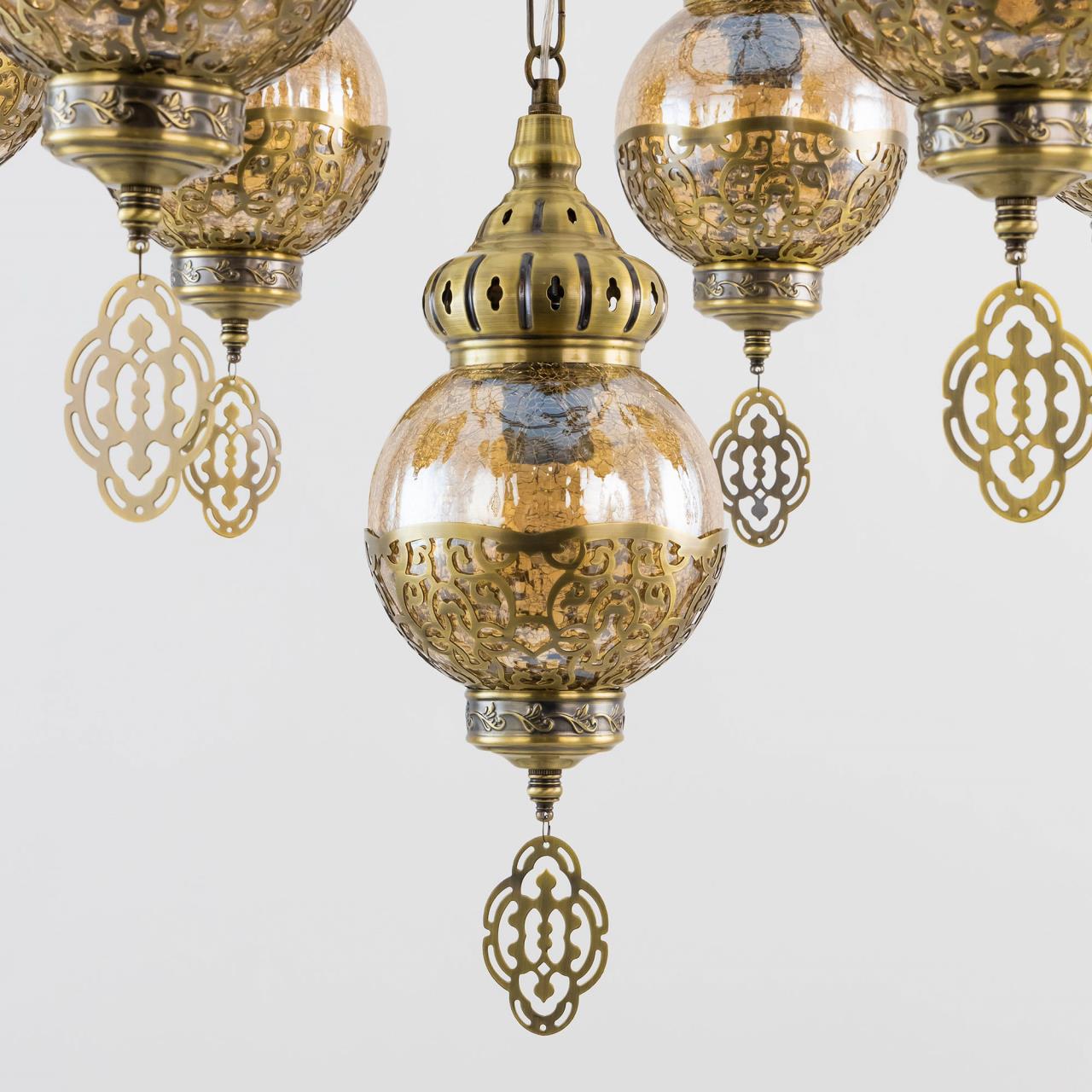 Восточная каскадная люстра CL419163 , страна бренда Дания , производитель Citilux , модель CL419163 относится к коллекции Каир с семью подвесными плафонами. Каркас металлический, цвет бронза. Плафоны в форме шара, изготовлены из прозрачного стекла медового оттенка, украшены декоративными, ажурными элементами. В изделии используются лампы с цоколем Е27, максимальной мощностью для ламп накаливания 75Вт. Светодиодные лампы можно устанавливать более яркие. Модель подходит для всех типов потолков, в том числе натяжных. Тип крепления – крючок. Люстра Каир CL419163 прекрасный вариант для атмосферного освещения интерьеров квартир и загородных домов, выполненных в восточном стиле. Это великолепное решение при оформления уютных кафе, баров и ресторанов. Купить модель CL419163 спешите в интернет магазине 220svet.ru