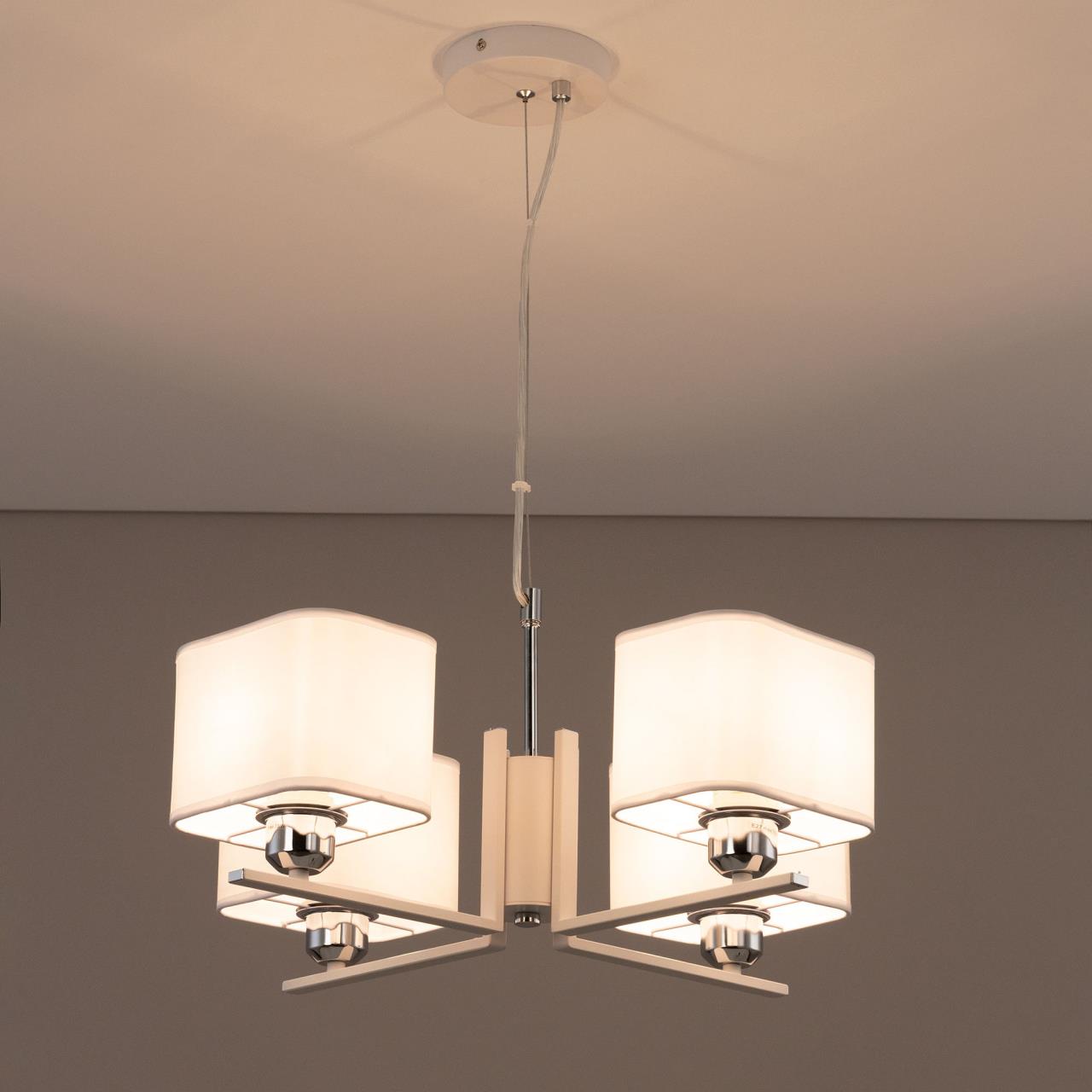 Современная подвесная люстра CL469245 от производителя Citilux относится к коллекции Тильда для стильных интерьеров, оформленных в светлых тонах. Корпус светильника металлический, цвет белый матовый с декоративными хромированными элементами. Абажуры квадратной формы, изготовлены из белой атласной ткани на подложке из оптического полимера. В изделии используются лампы с цоколем Е27, максимальной мощностью для ламп накаливания 75Вт. Светодиодные лампы можно применять более яркие. Подходит для всех типов потолков, в том числе натяжных. Тип крепления – планка. Размеры светильника: длина 52,5см, ширина 52,5см, высота регулируется в диапазоне 30-120см, осветит около 13м² , страна бренда Дания . Купить модель CL469245 спешите в интернет магазине 220svet.ru