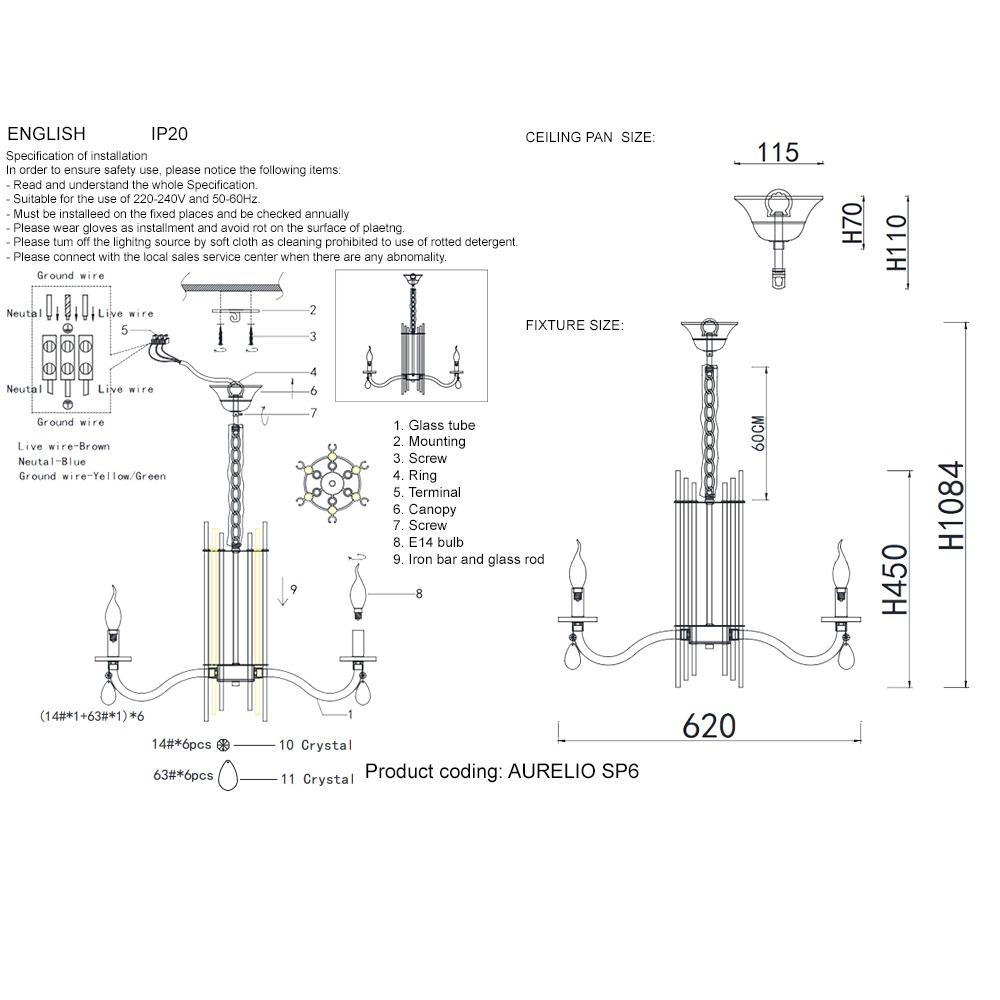 - Количество ламп: 6 шт