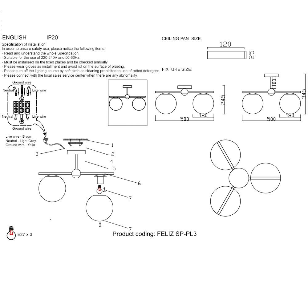 - Количество ламп: 3 шт