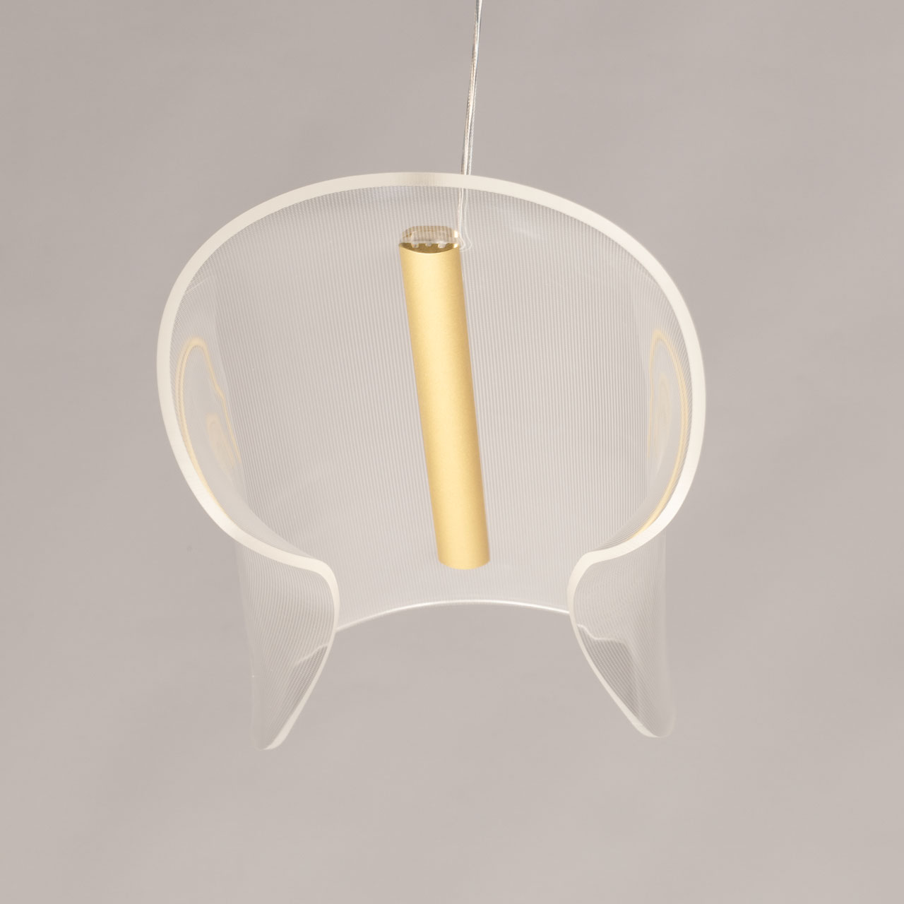 Металлическое основание подвесной люстры гальванизировано в цвет золота. Люстра декорирована прозрачным акрилом оригинальной формы.