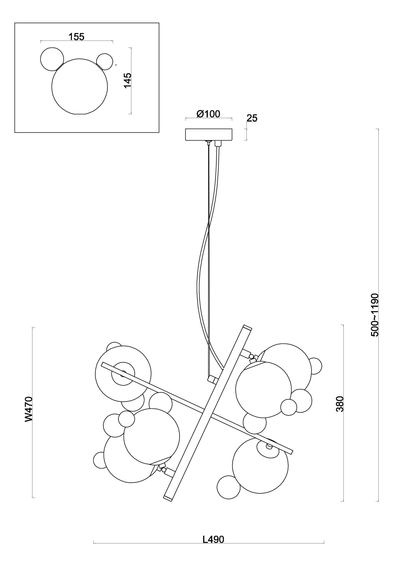 - Высота плафона (абажура): 145