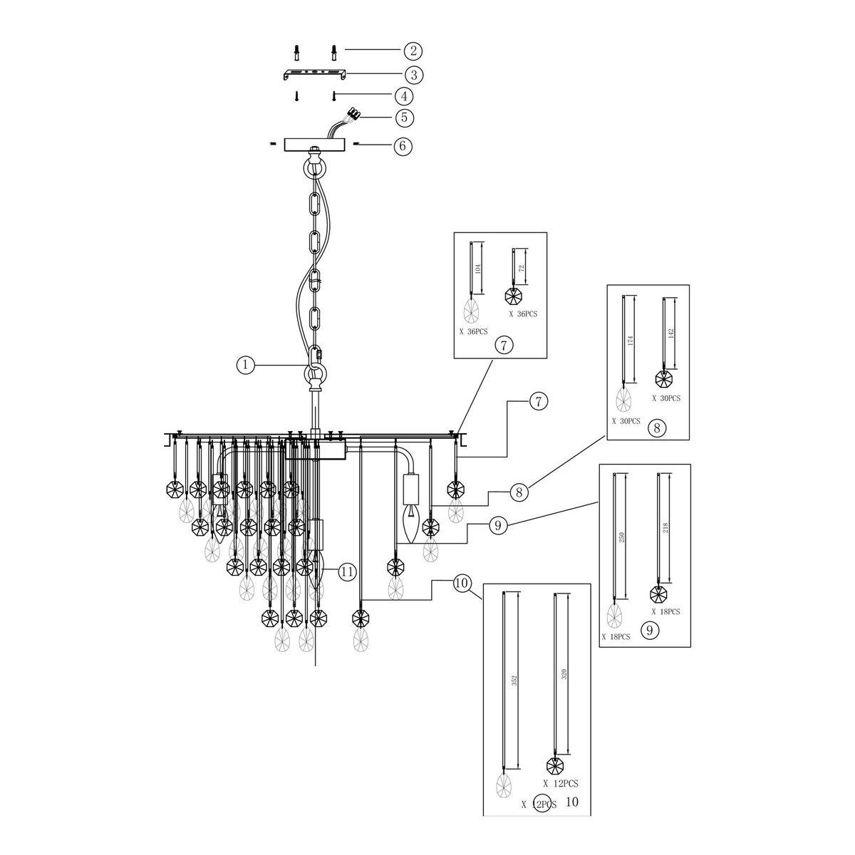 - Материал плафонов: Хрусталь