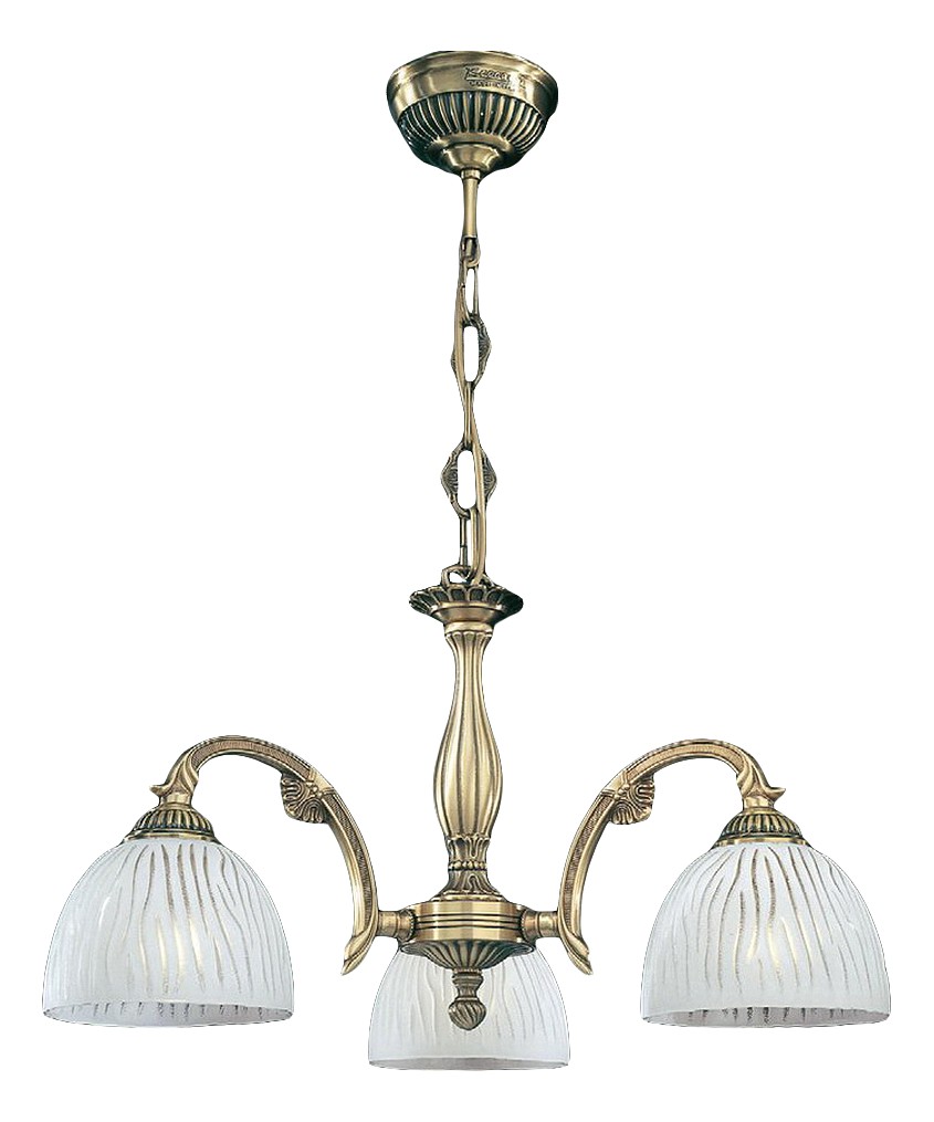 Подвесная люстра Reccagni Angelo L 5650/3 Итальянского производсва – лучшее соотношение цена-качество. Этот светильник Классического стиля хорошо подойдет Для спальни и придаст помещению мягкий и приятный свет. Плафоны белые из стекла. Арматура бронза из металла. Кол-во ламп - 3шт. Общая мощность 180W