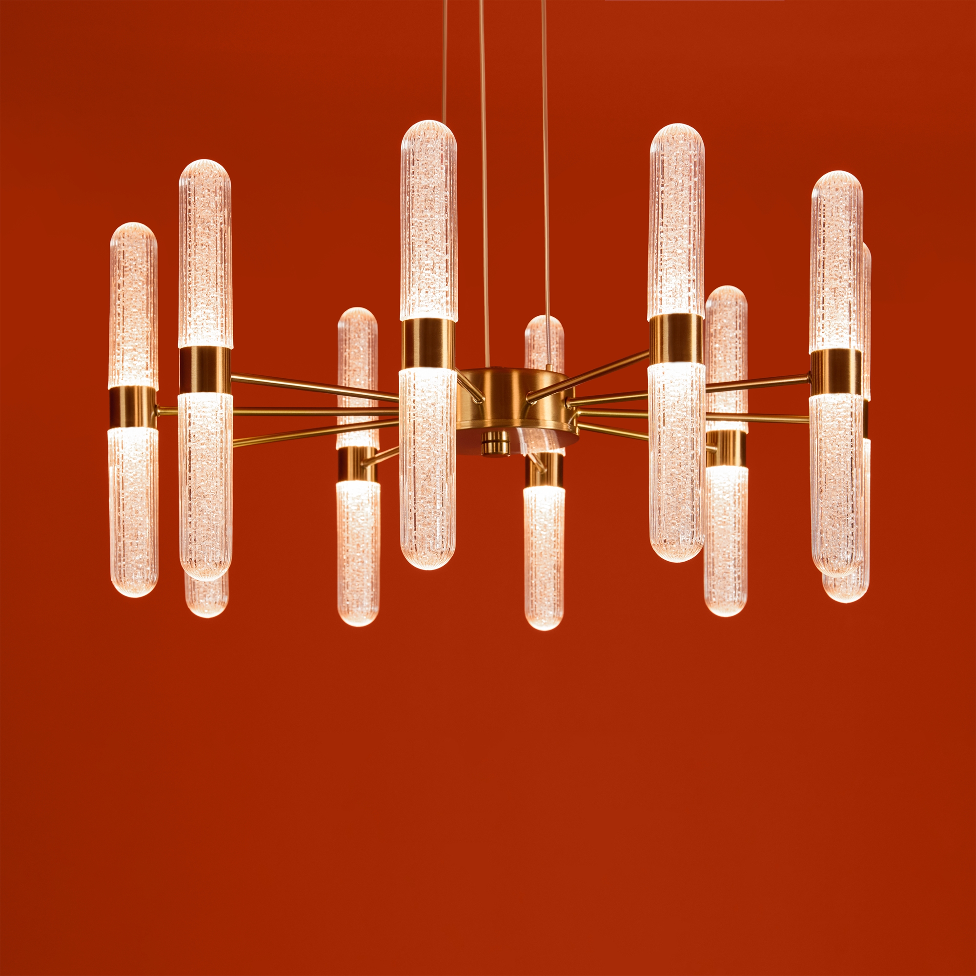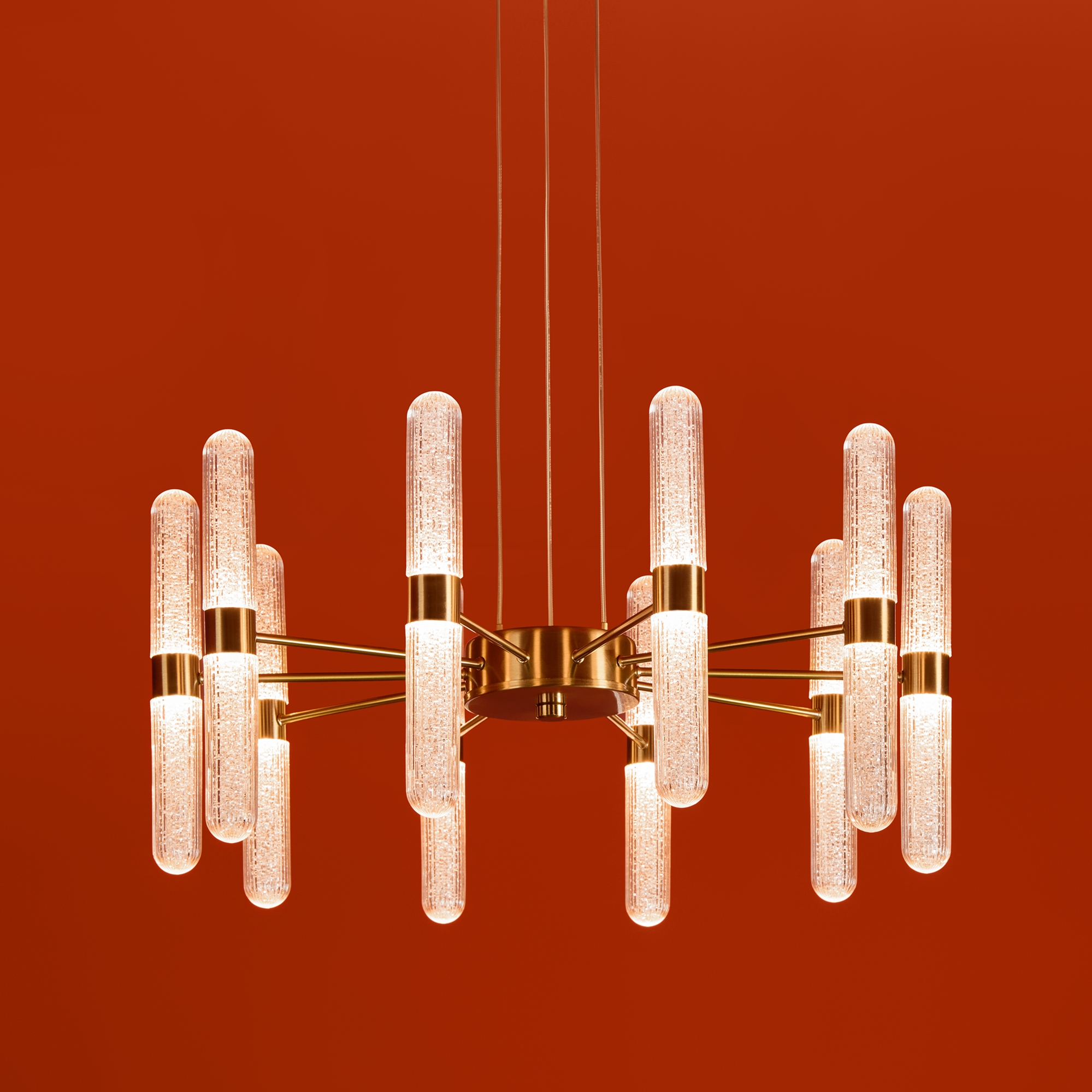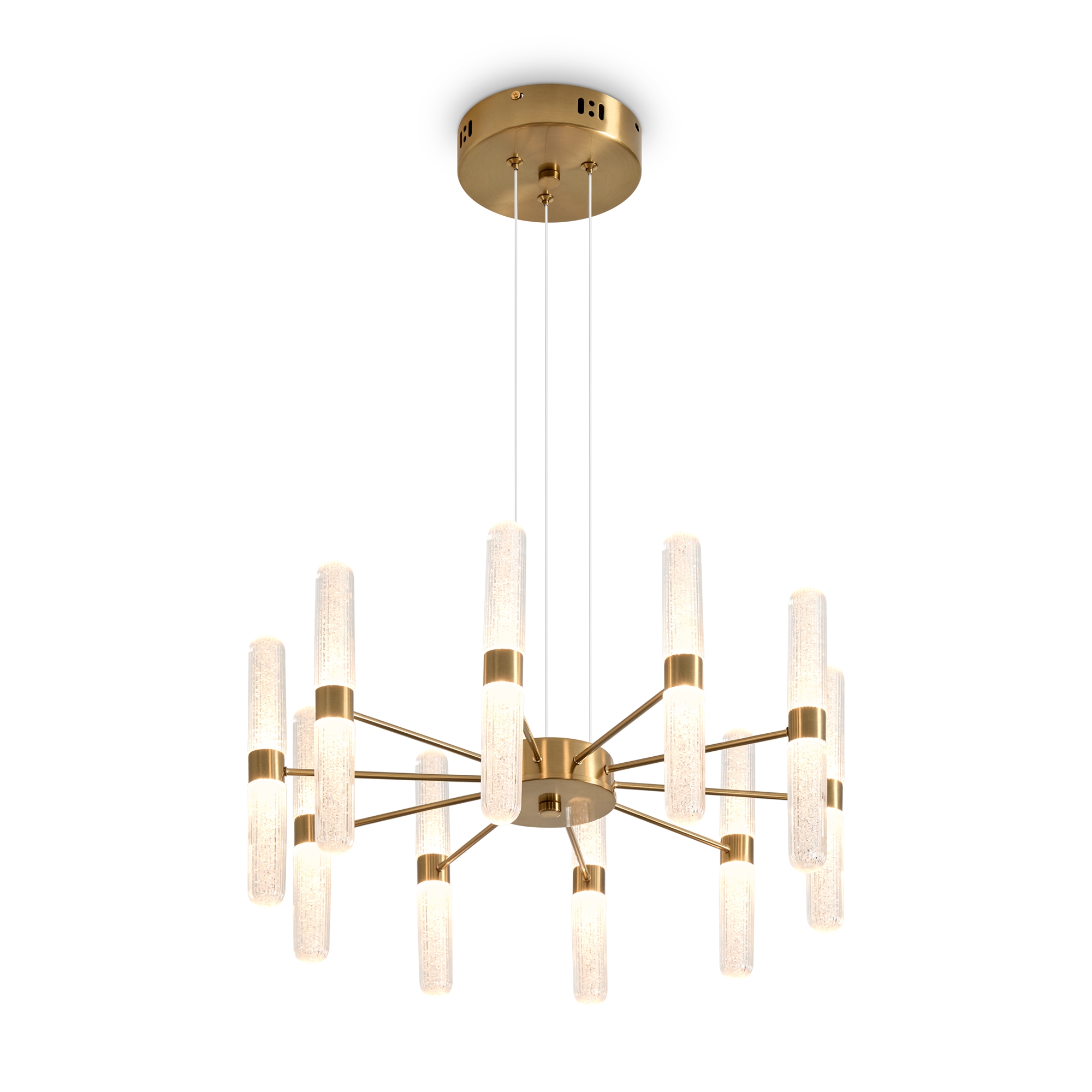 Арматура - металл в цвете латунь и никель. Основной акцент в дизайне люстр Alias сделан на акриловые плафоны, эффект пузырьков. Встроенный LED модуль 2700K. 2 дизайна подвесных светильников.
