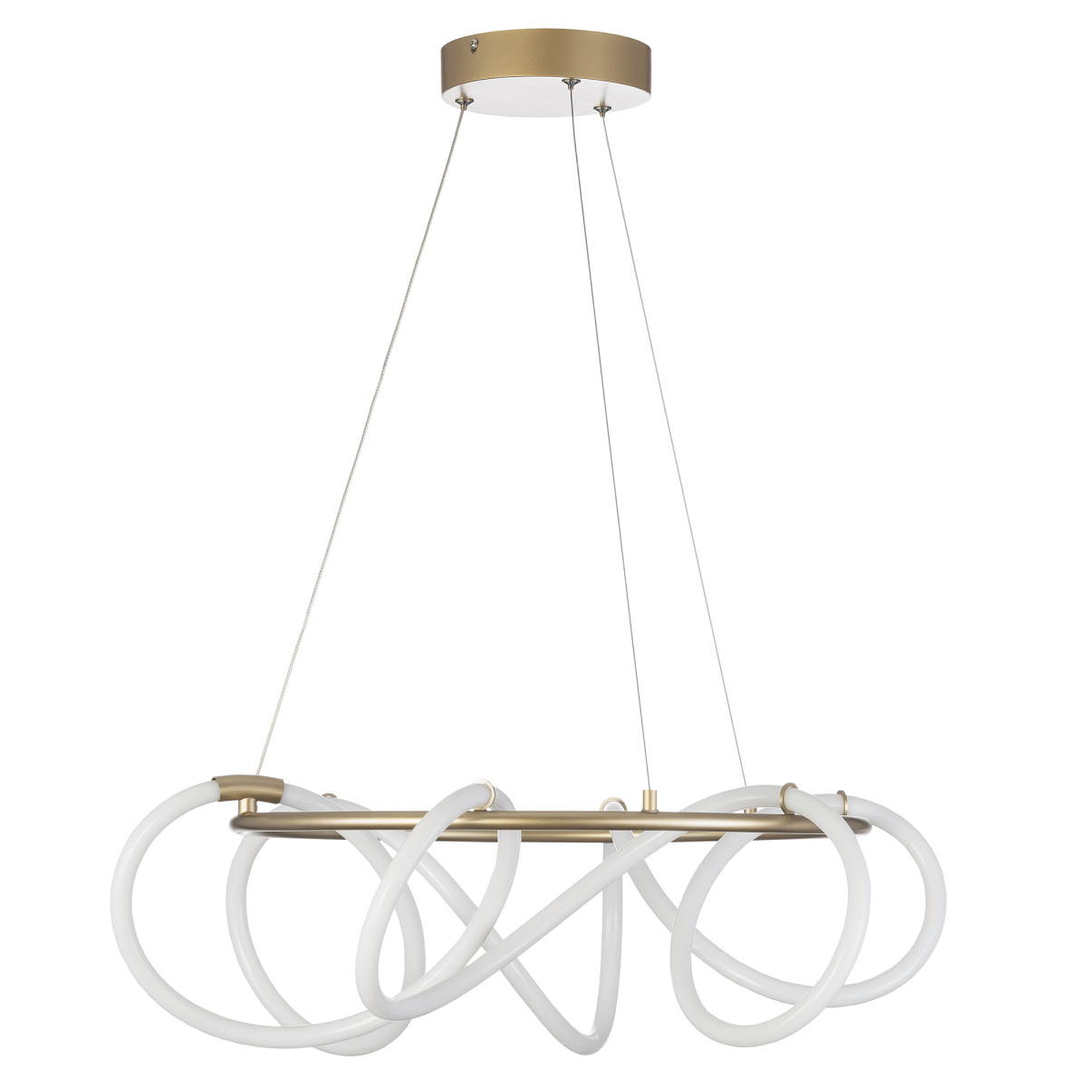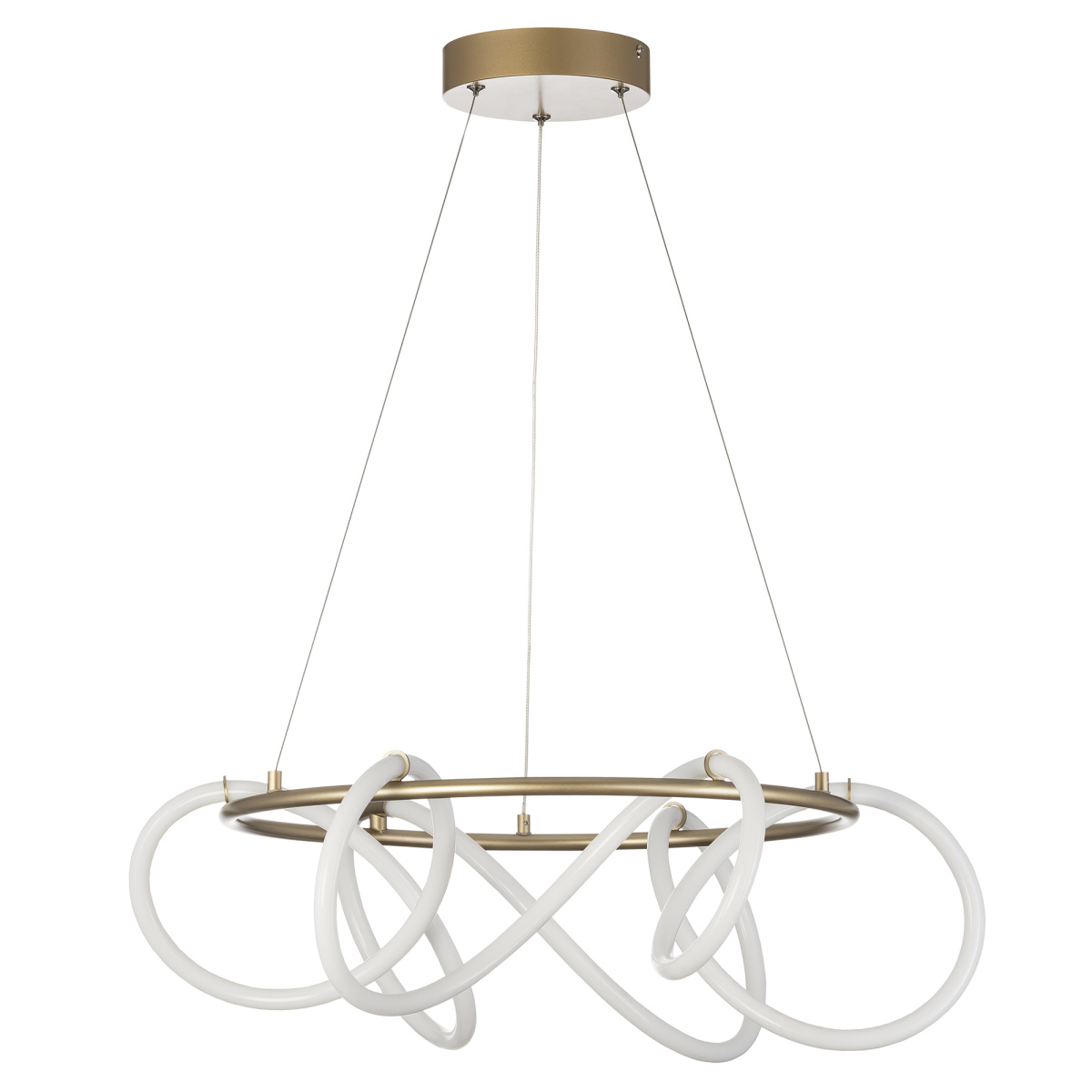 Оригинальная подвесная LED люстра CL210132 от производителя Ситилюкс EVA - воплощение современного стиля и элегантности. Матовый золотой металлический корпус и гибкий световод, изящно обвивающий кольцо создают неповторимый образ. Мощность изделия 41Вт, световой поток 4140Лм, цветовая температура 4000К – нейтральный белый свет, индекс цветопередачи CRI >80. Диаметр модели 60см, высота легко регулируется при установке в диапазоне от 37см до 1,4м.Данную модель CL210132 спешите купить в магазине 220svet.ru