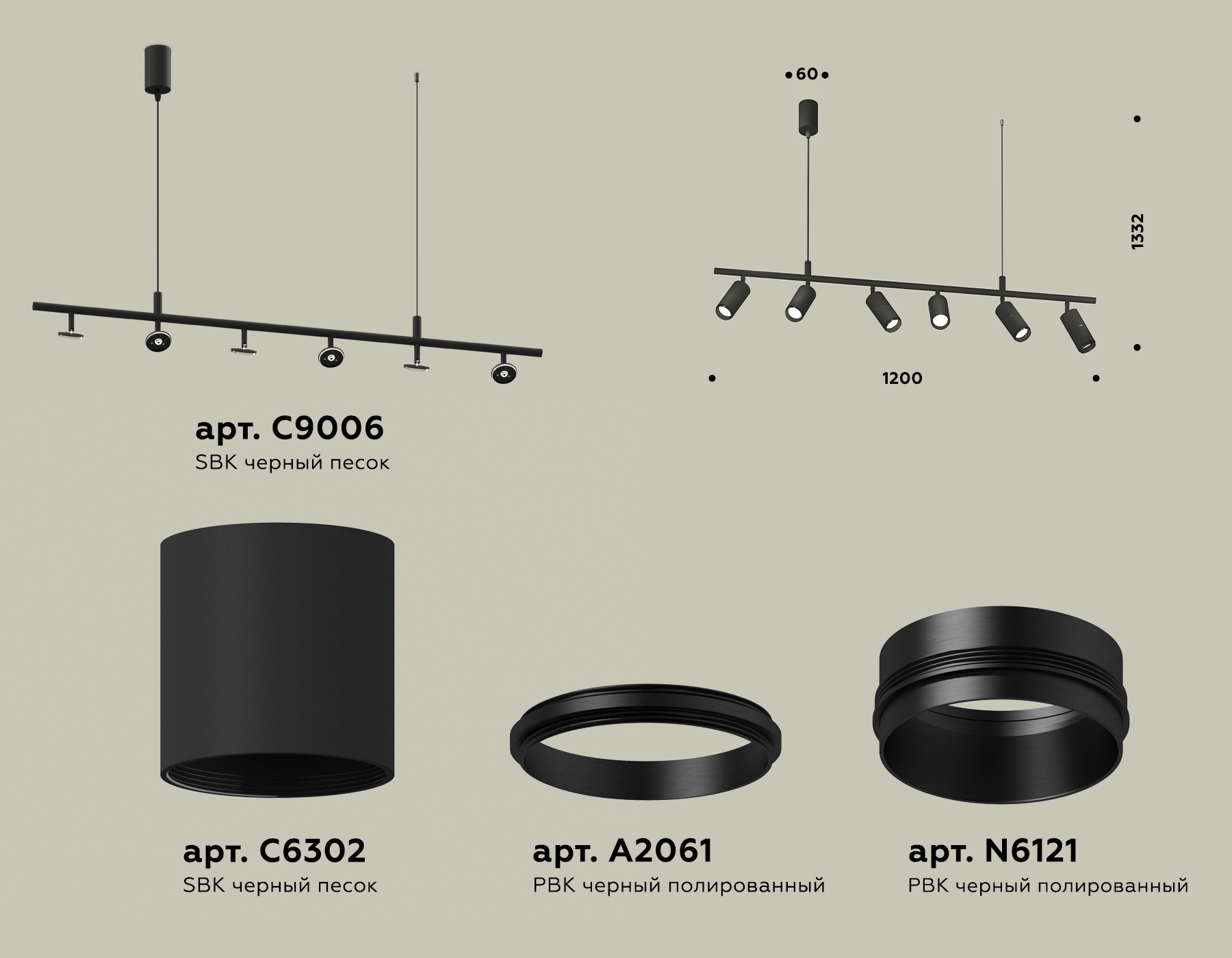 - Цвет плафонов: Черный