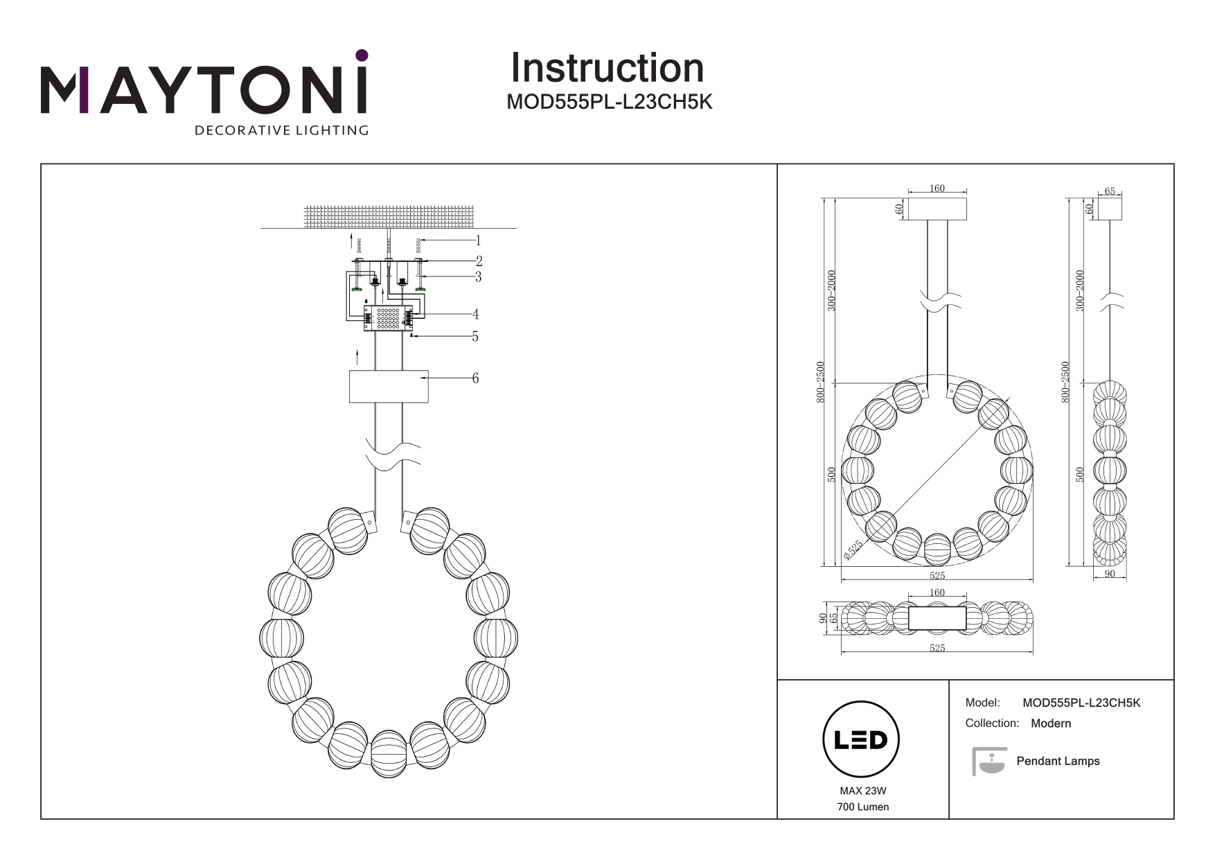 Купить "Подвесной светильник Amulet MOD555PL-L23CH5K"