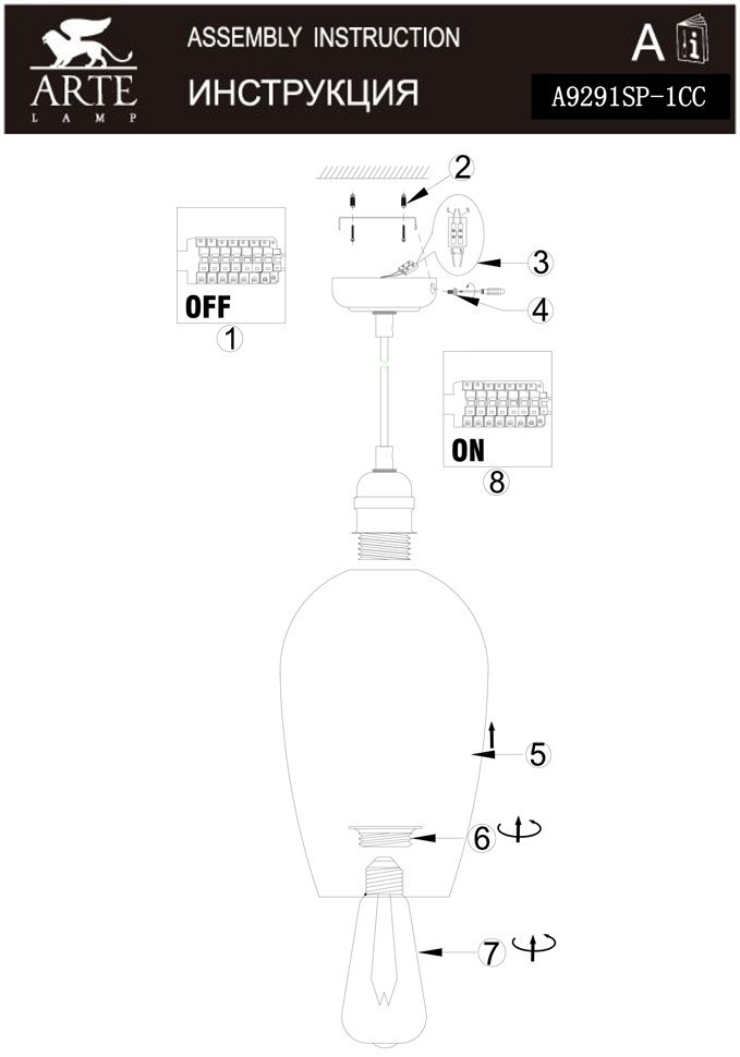 Купить "Подвесной светильник Arte Lamp A9291SP-1CC"