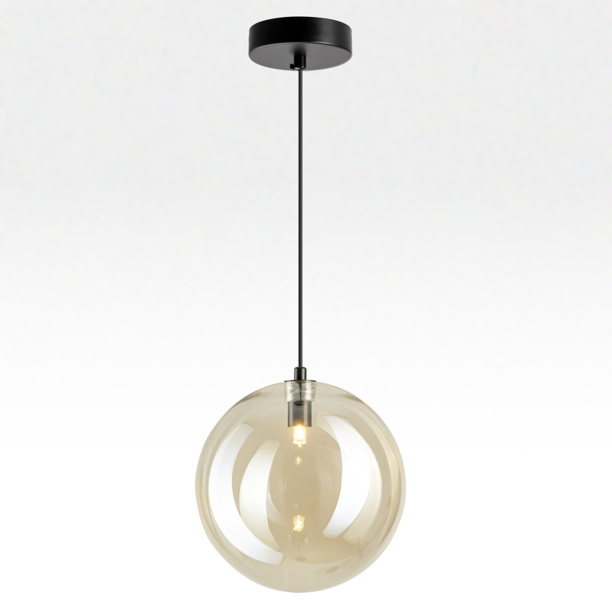 Современный подвесной светильник Citilux ORTON CL202022 представляет собой гармоничное сочетание правильных геометрических форм и воздушной лёгкости. Прозрачный стеклянный шар с золотистым оттенком шампань, подвешенный на чёрном матовом металлическом основании, выглядит эффектно при любом освещении.