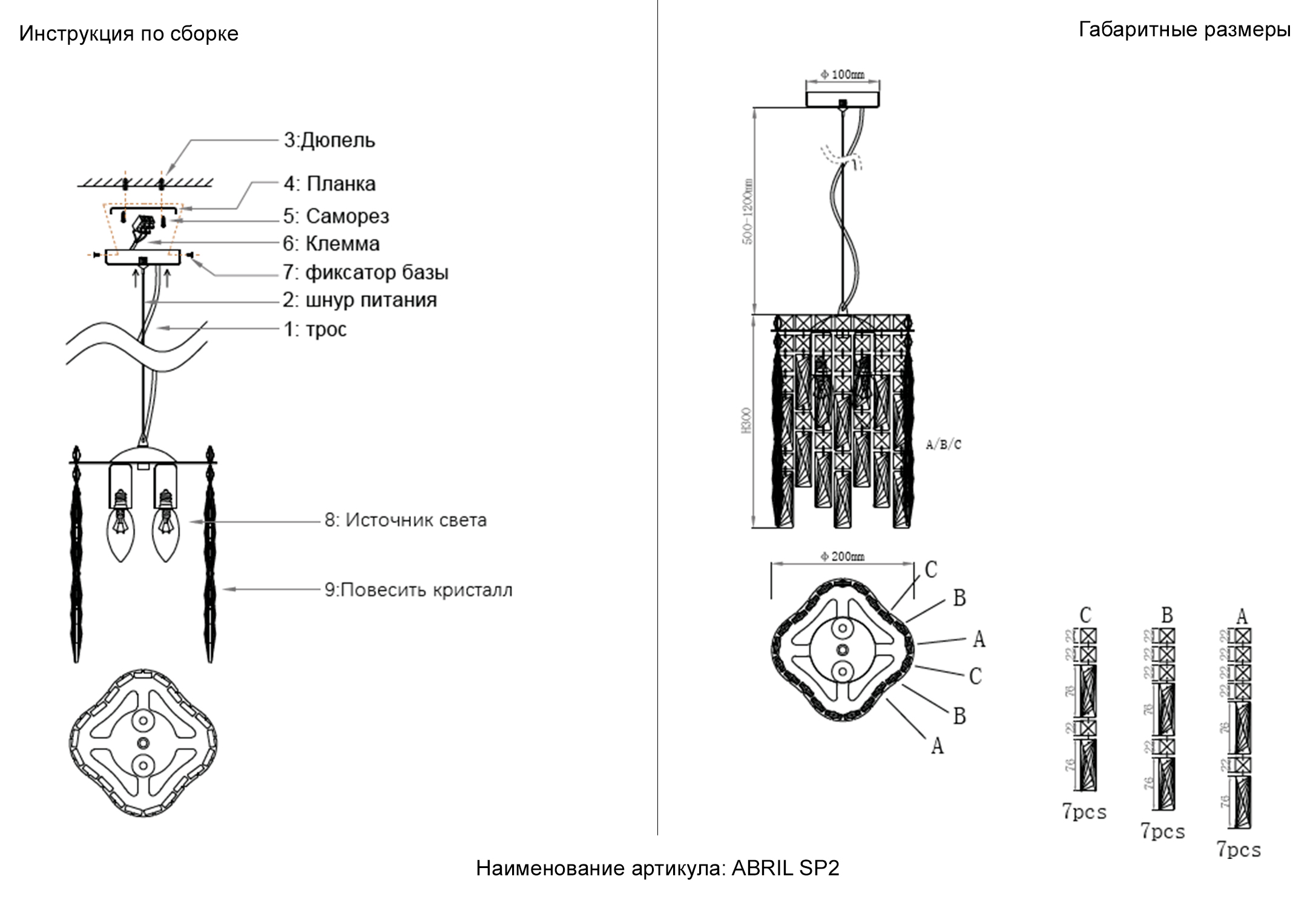 - Материал плафонов: Хрусталь
