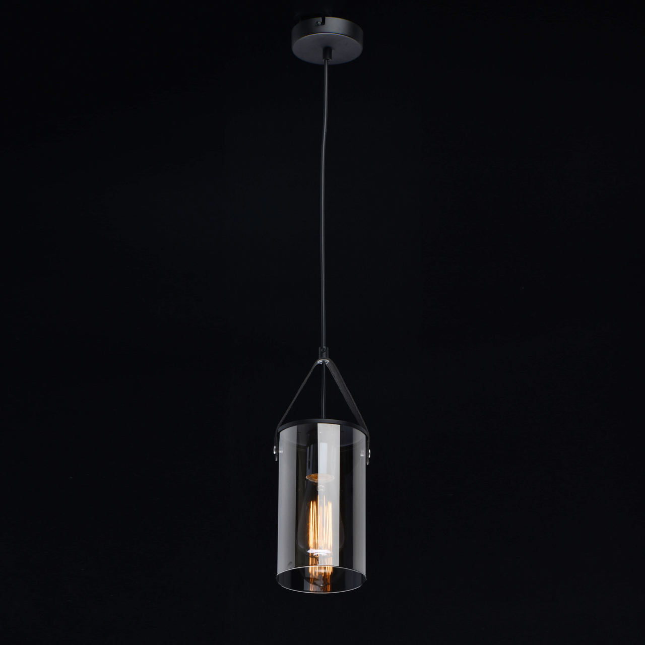 Конструкция состоит из металлического основания черного цвета и стеклянного плафона оттенка антрацит. Крепеж представляет собой кожаный ремешок, что является дополнительным штрихом в оформлении. Свет направлен вниз, рассеивается в мягкую дымку. Среди других характеристик De Markt Тетро обратите внимание на: