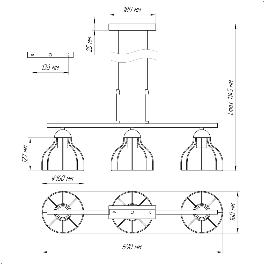 Лаконичный подвесной светильник привлечет внимание любого! Рекомендуемая площадь освещения - 10-15м2. Плафон светильника изготовлен из металлических прутьев, а высоту светильника вы с легкостью сможете отрегулировать именно под вашу высоту потолка. Люстра гармонично дополнит интерьер дома, кафе или офиса в стиле Лофт, идеально вписавшись в концепцию дизайна. Для данных светильников могут применяться как стандартные лампы накаливания, светодиодные, энергосберегающие КЛЛ, так и светодиодные филаментные лампы. Особое внимание предлагаем обратить на применение в данных светильниках филаментных ламп, их теплый, мягкий свет создаст по-настоящему уютную и домашнюю атмосферу. Лампы в комплект не входят. Данную модель 1005404673 можно купить в интернет - магазине 220svet.ru