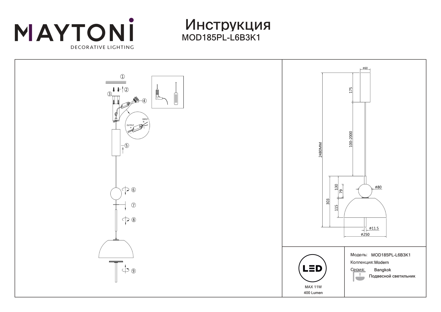 Данную модель MOD185PL-L6B3K1 с быстрой доставкой спешите купить по цене 17 490 ₽ в магазине 220svet.ru