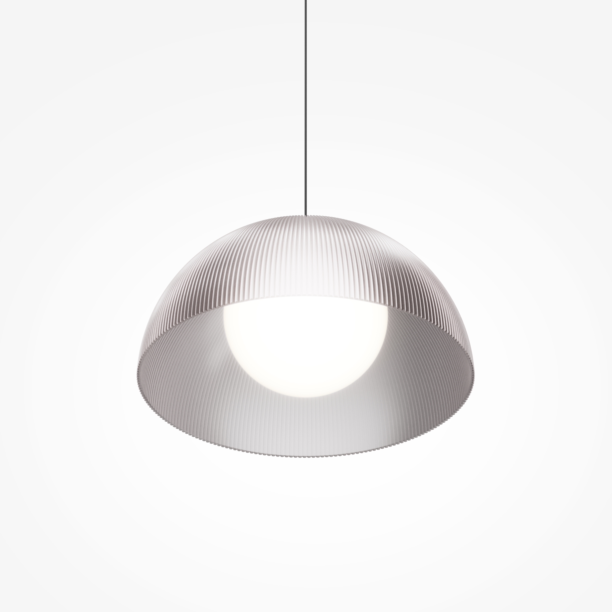 В серии представлены подвесные светильники двух диаметров абажура: 400мм и 600мм. Абажур из рельефного полупрозрачного акрила дымчатого цвета. Встроенный LED-источник с цветовой температурой 3000K. Свет мягко рассеивается матовым акрилом сферической формы. Высокий индекс цветопередачи CRI 90. Арматура из металла с черным покрытием "сэнди". Длина провода регулируется до 3000 мм. Предназначены для основного рассеянного освещения. Универсальное применение в жилых и коммерческих интерьерах.