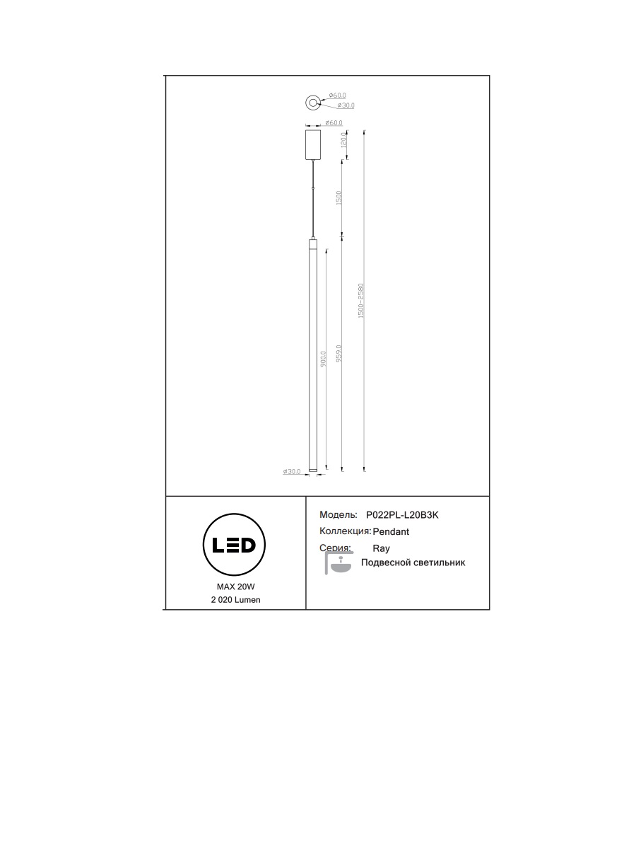 Данную модель P022PL-L20B3K с быстрой доставкой спешите купить по цене 14 760 ₽ в магазине 220svet.ru