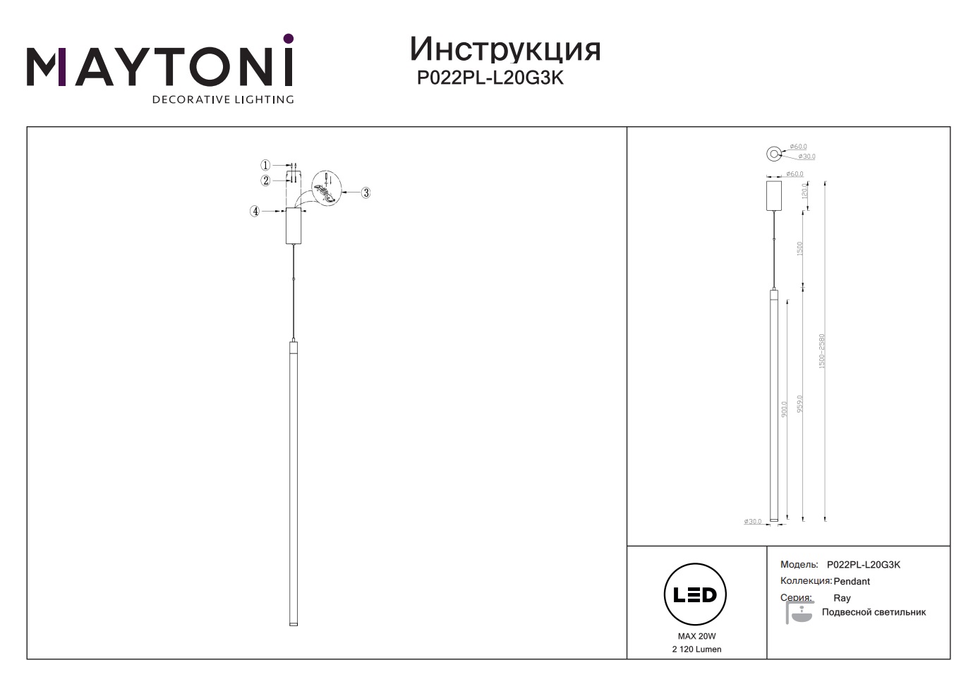 Данную модель P022PL-L20G3K с быстрой доставкой спешите купить по цене 14 760 ₽ в магазине 220svet.ru