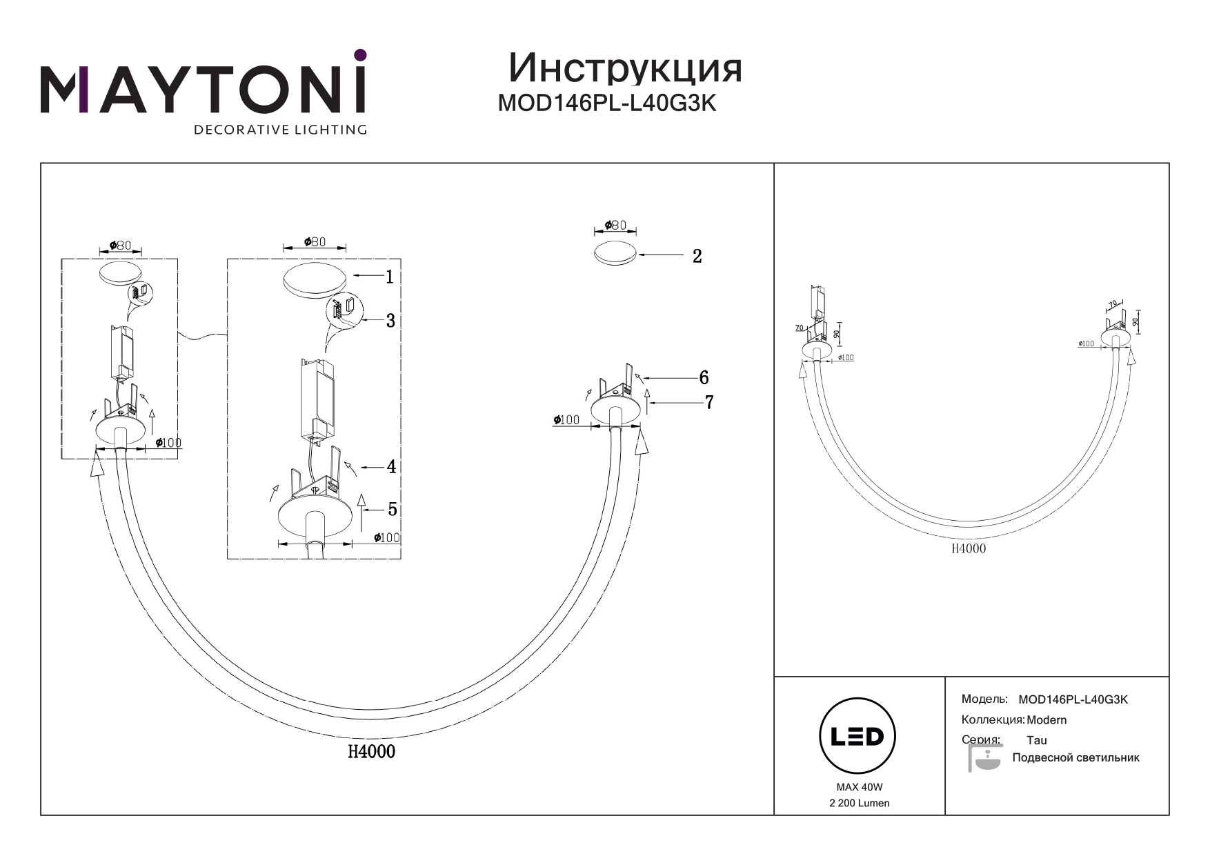 Данную модель MOD146PL-L40G3K с быстрой доставкой спешите купить по цене 17 493 ₽ в магазине 220svet.ru